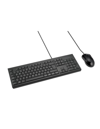 Kensington Kit de teclado y ratón con cable KM100 EQ. Formato del teclado: Completo (100%). Estilo de teclado: Derecho. Tecnología de conectividad: Alámbrico, Interfaz del dispositivo: USB, Interruptor del teclado: Interruptor de membrana, Diseño de teclado: QWERTY, Teclado, cantidad de teclas: 105. Longitud de cable: 1,5 m. Uso recomendado: Oficina. Color del producto: Negro. Ratón incluido