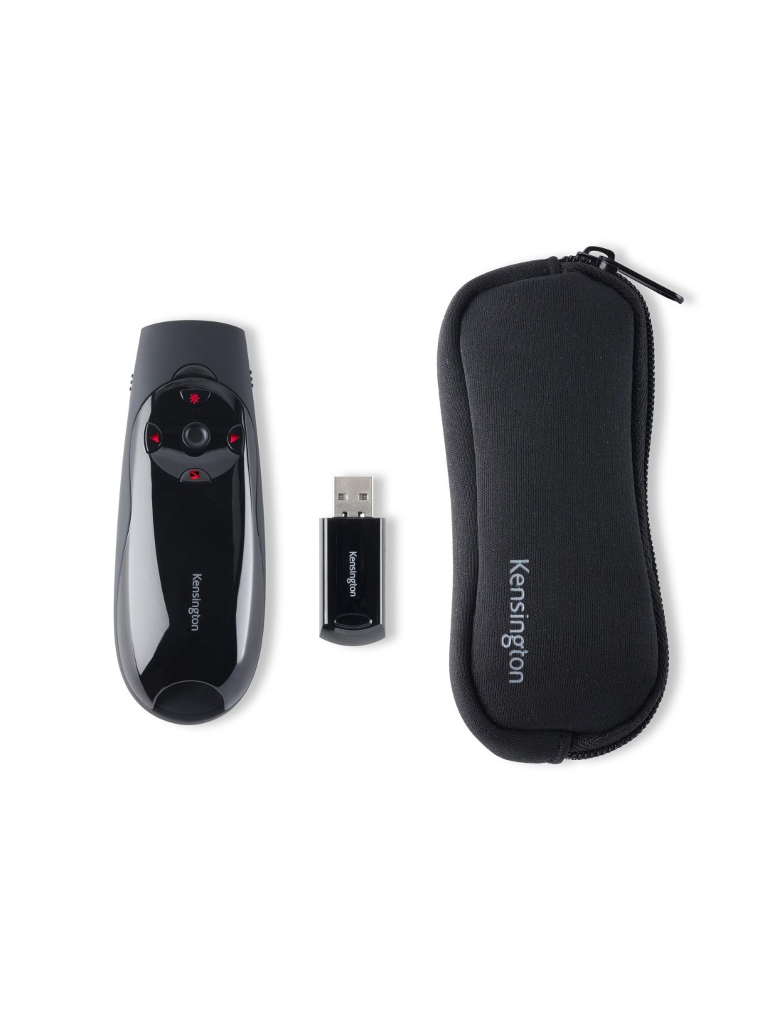 Kensington Presentador Expert Control del cursor inalámbrico con láser rojo. Interfaz de receptor inalámbrico: USB, Tecnología inalámbrica: RF, Tipo de receptor: Receptor estándar. Color del producto: Negro, Funciones de presentador: Puntero láser, Mando a distancia, Puntero láser a color: Rojo. Sistemas operativos compatibles: Windows 10; Windows 8; macOS X 10.11. Peso: 90 g. Cantidad por paquete: 1 pieza(s)
