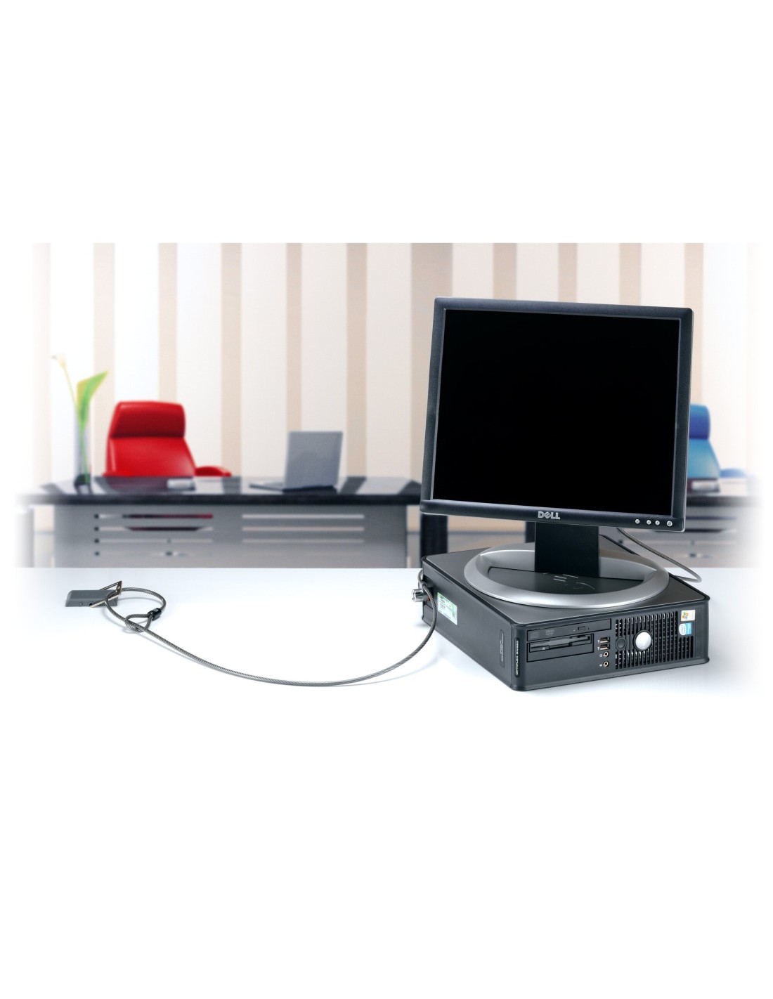 Añada un punto de anclaje seguro a cualquier superficie de trabajo y brinde a sus empleados un lugar práctico y fácilmente accesible para bloquear el ordenador. El punto de anclaje Kensington para instalar en mesas se adhiere con cinta adhesiva industrial o con tornillos de fijación.
