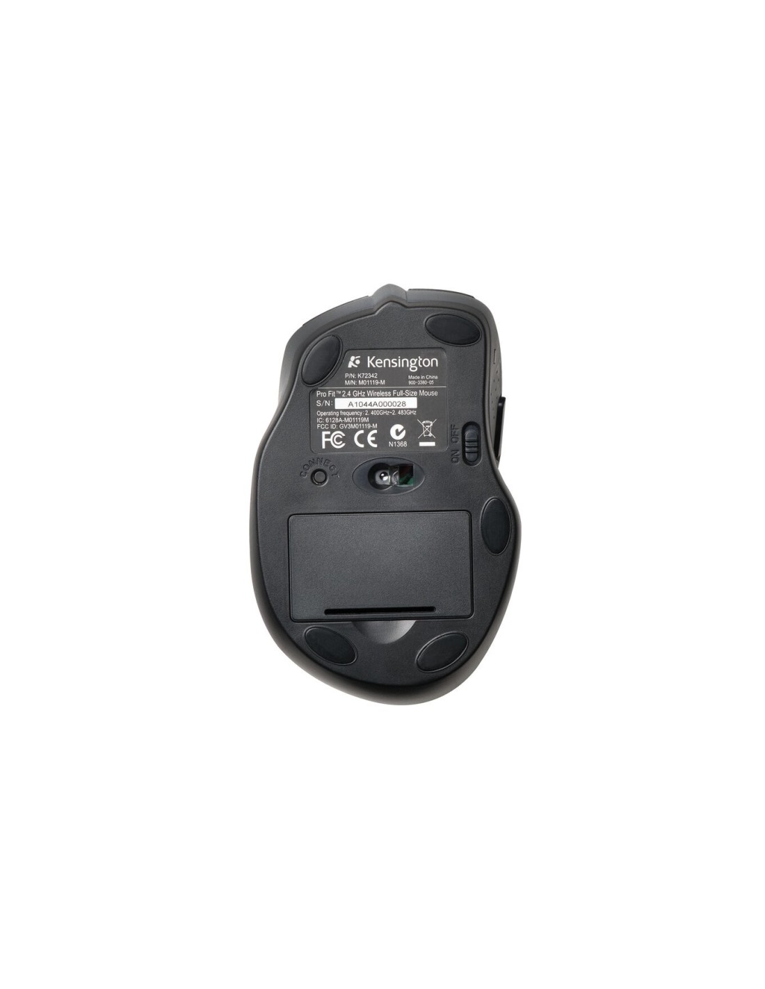 Kensington Ratón inalámbrico Pro Fit™ tamaño normal. Factor de forma: Ambidextro. Tecnología de detección de movimientos: Óptico, Interfaz del dispositivo: RF inalámbrico, Resolución de movimiento: 1600 DPI, Tipo de botones: Botones presionados, Cantidad de botones: 6, Tipo de desplazamiento: Rueda. Fuente de energía: Baterías. Color del producto: Negro