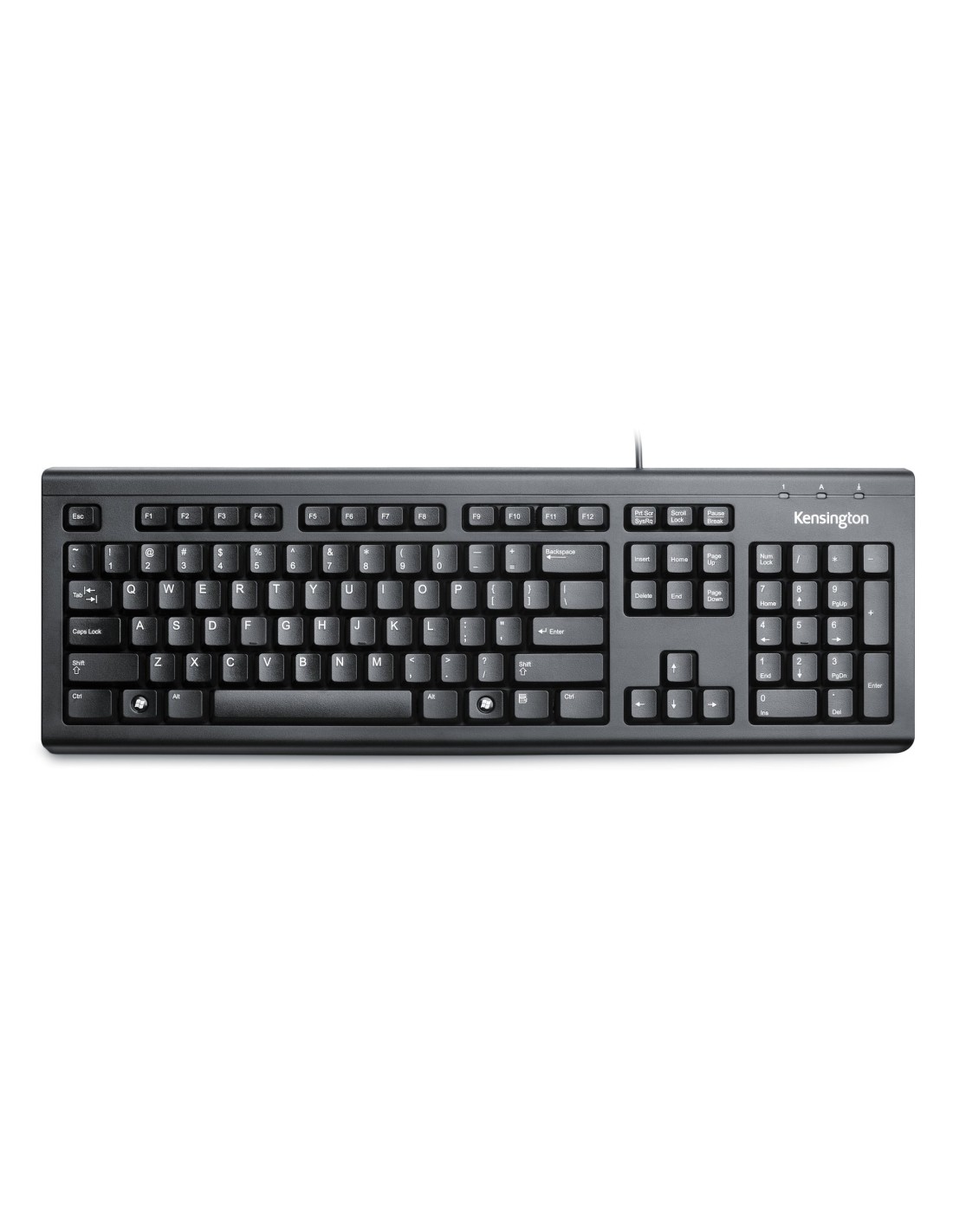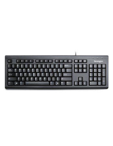 Kensington Teclado Value con cable. Formato del teclado: Completo (100%). Estilo de teclado: Derecho. Tecnología de conectividad: Alámbrico, Interfaz del dispositivo: USB, Diseño de teclado: QWERTY. Longitud de cable: 1,5 m. Uso recomendado: Oficina. Color del producto: Negro