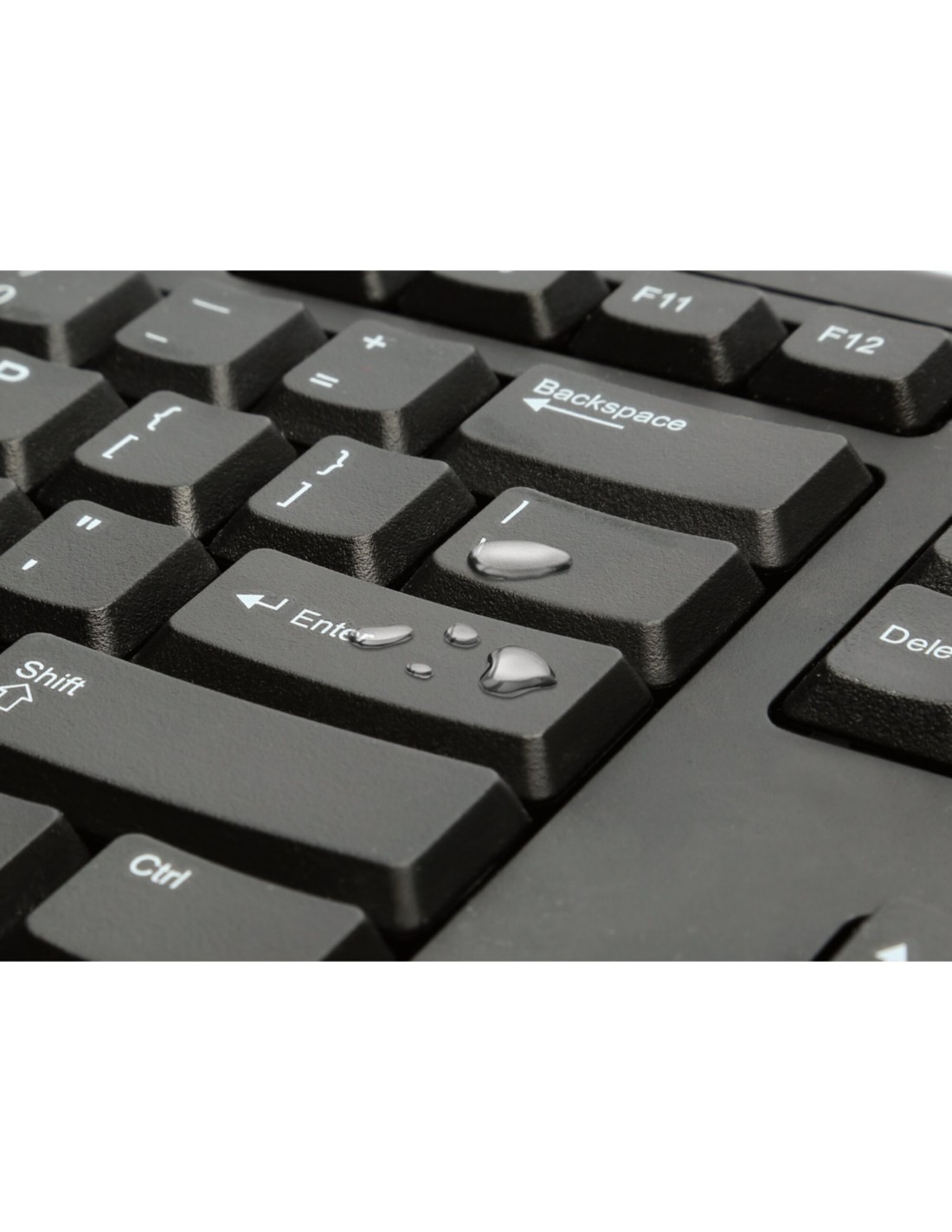 El teclado ValuKeyboard con cable de Kensington tiene una membrana sellada a prueba de derrames diseñada para resistir los accidentes con el café, agua y otros líquidos. Incluye instalación Plug & Play con cable USB o conexión.