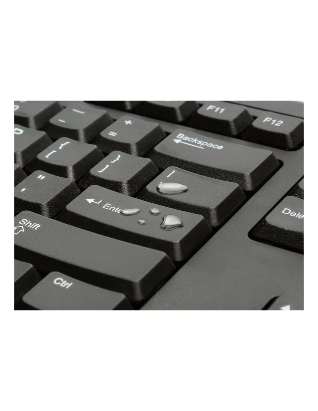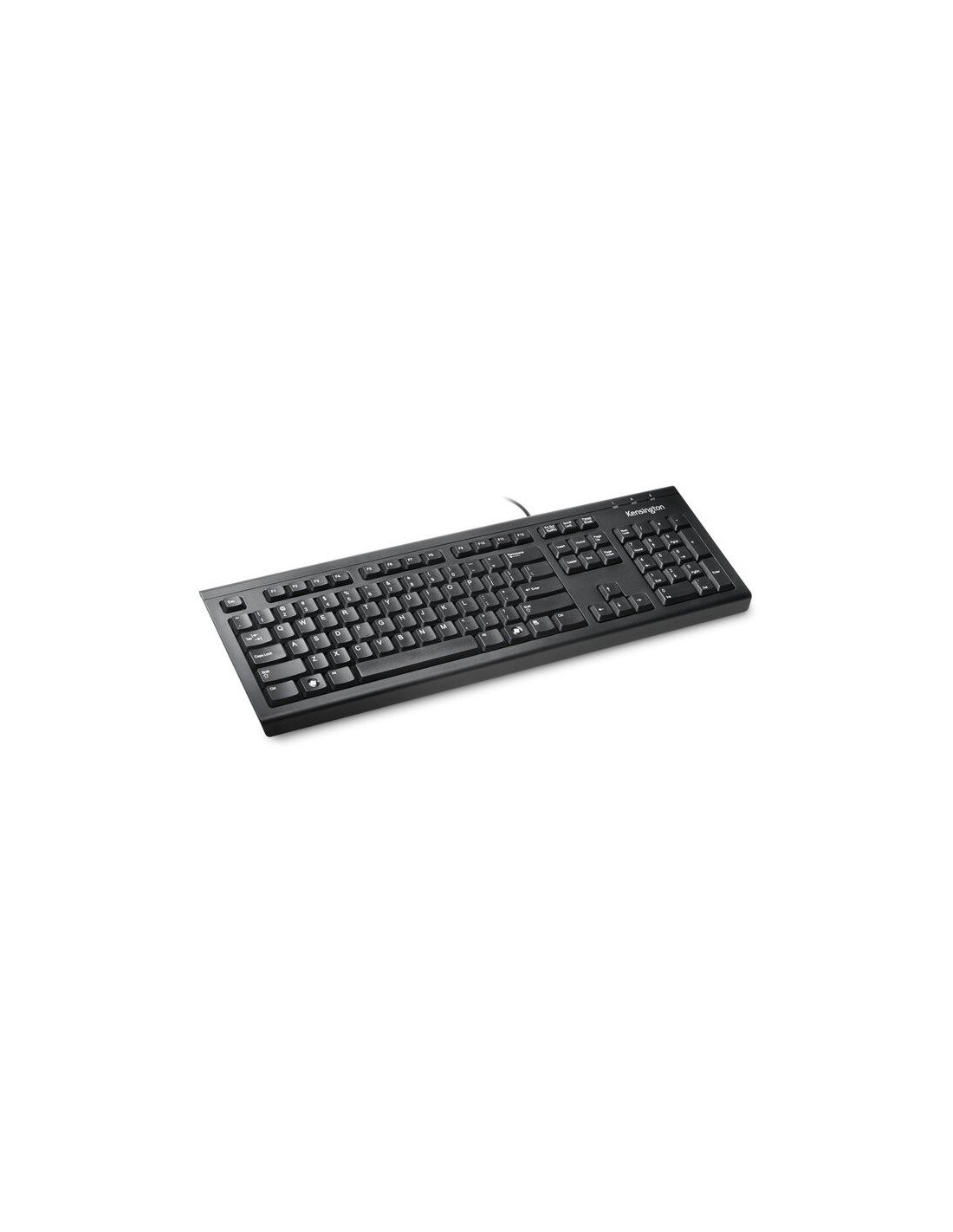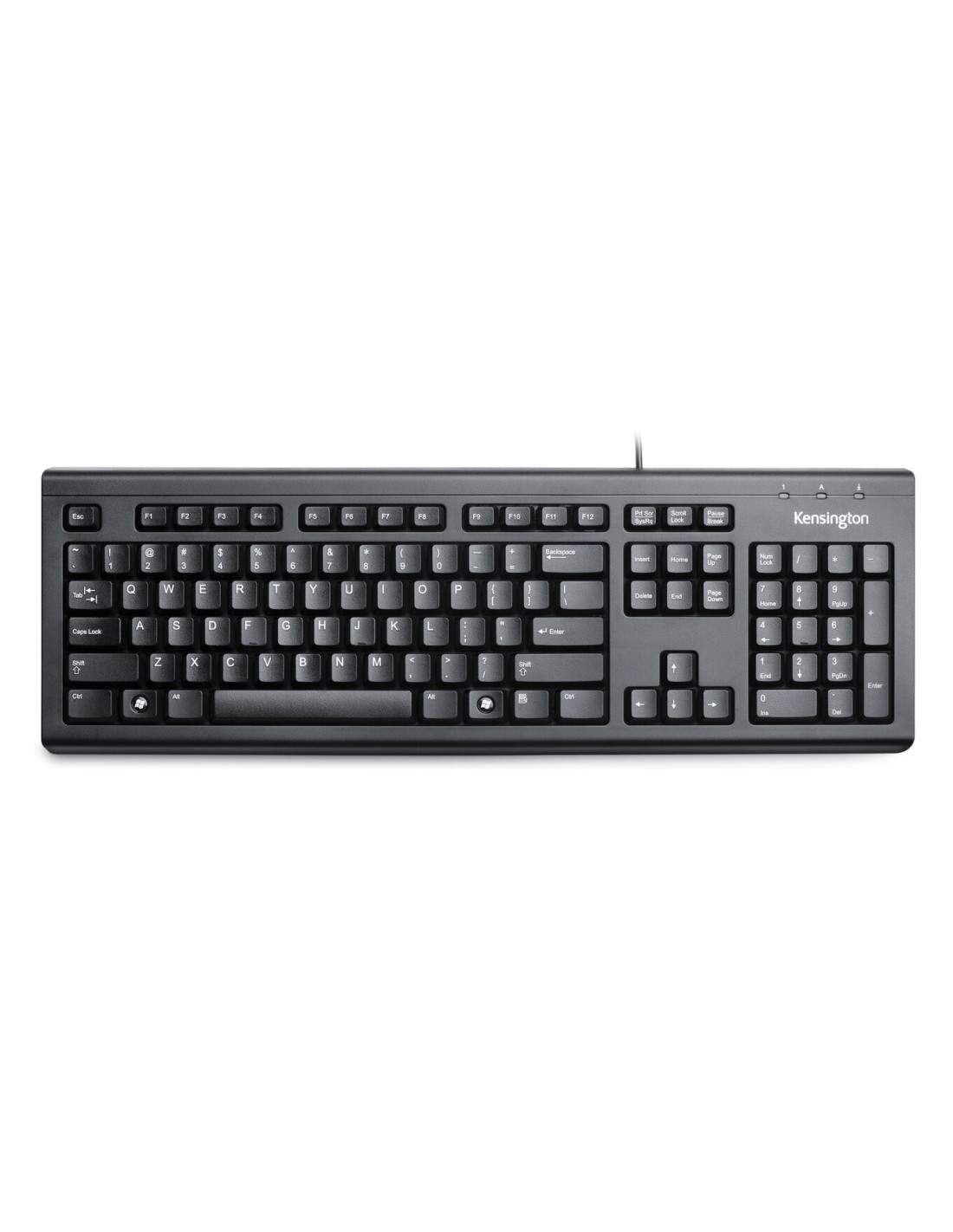 Kensington ValuKeyboard. Formato del teclado: Completo (100%). Estilo de teclado: Derecho. Tecnología de conectividad: Alámbrico, Interfaz del dispositivo: USB, Diseño de teclado: QWERTY. Longitud de cable: 1,5 m. Uso recomendado: Oficina. Color del producto: Negro