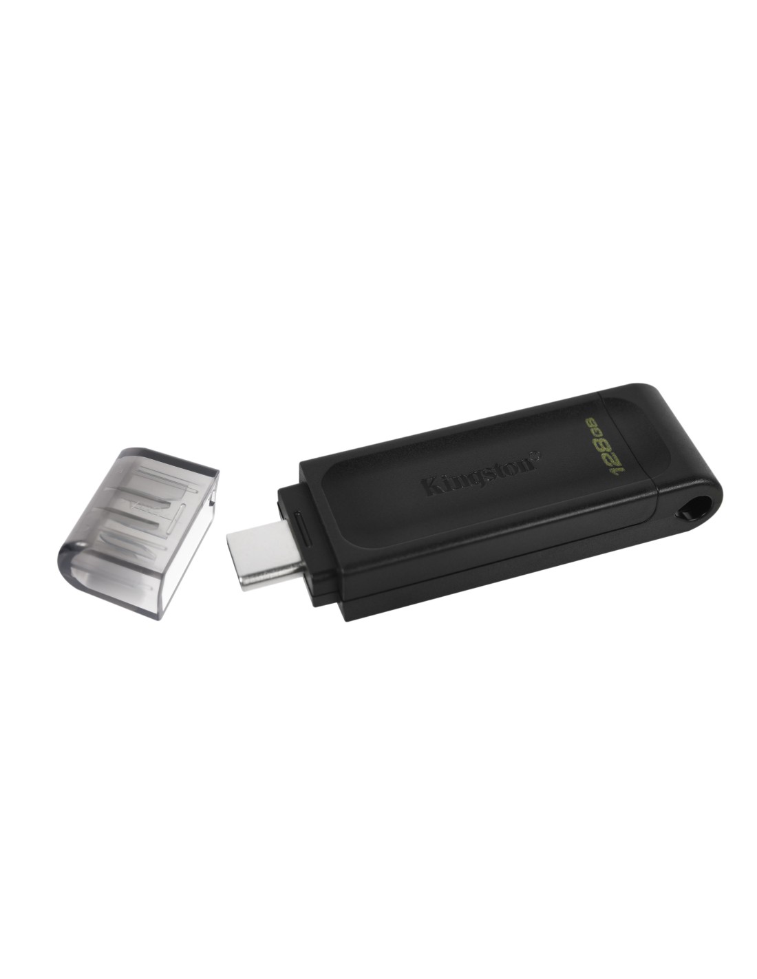 Kingston Technology DataTraveler 128GB USB-C 3.2 Gen 1 70. Capacidad: 128 GB, Interfaz del dispositivo: USB Tipo C, Versión USB: 3.2 Gen 1 (3.1 Gen 1). Factor de forma: Tapa. Peso: 7 g. Color del producto: Negro