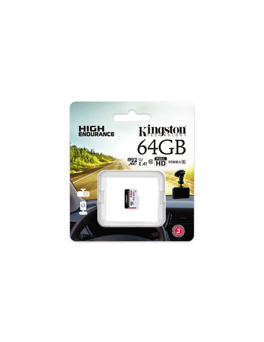 Kingston Technology High Endurance. Capacidad: 64 GB, Tipo de tarjeta flash: MicroSD, Clase de memoria flash: Clase 10, Tipo de memoria interna: UHS-I, Velocidad de lectura: 95 MB/s, Velocidad de escritura: 30 MB/s, Clase de velocidad UHS: Class 1 (U1). Funciones de protección: Resistente a golpes, Resistente a la temperatura, Resistente al agua, Color del producto: Negro, Blanco