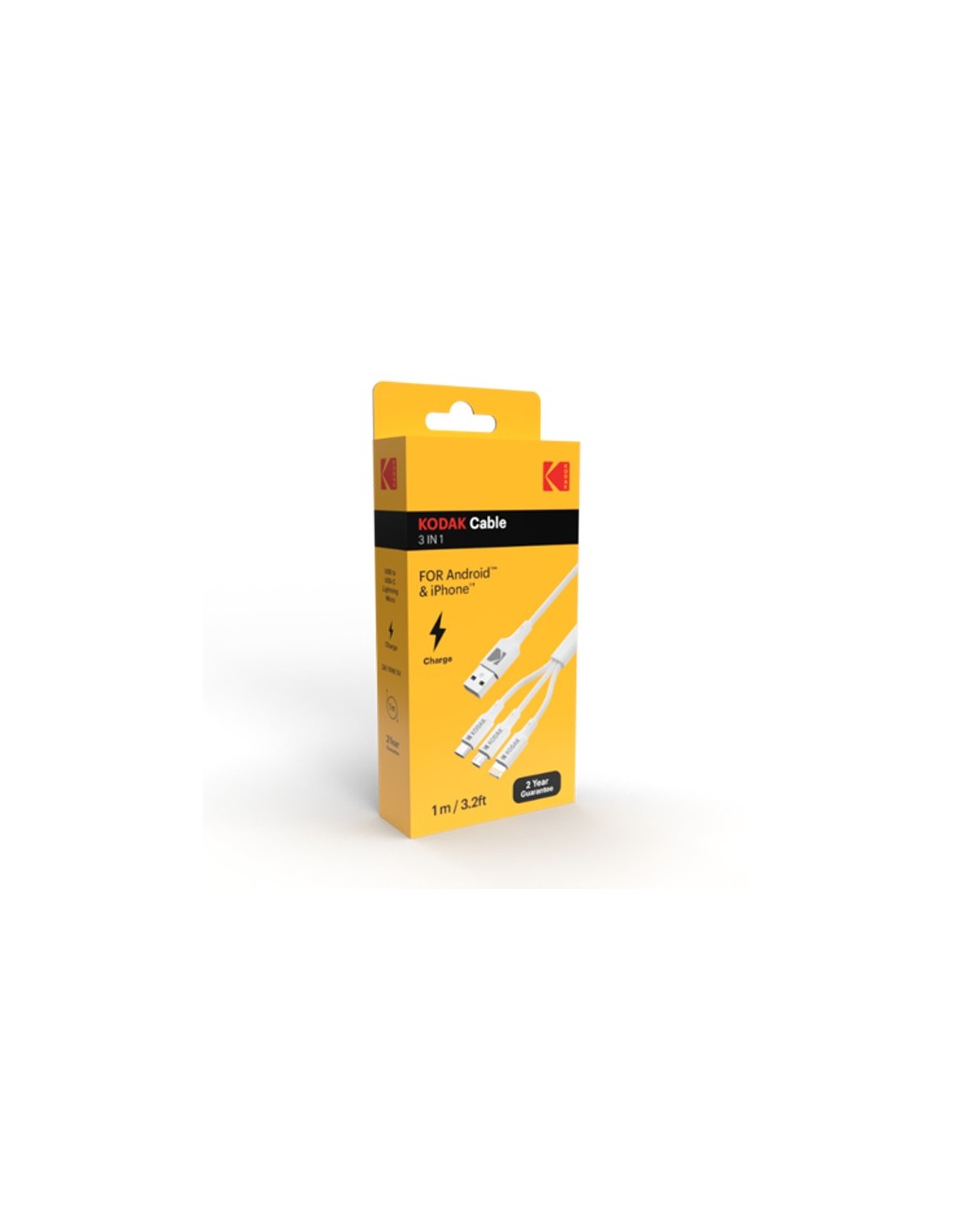 Kodak 30425835. Longitud de cable: 1 m. Conector 1: USB A, Conector 2: USB C/Micro-USB B/Lightning, Tasa de transferencia (máx): 0,48 Gbit/s, Color del producto: Blanco