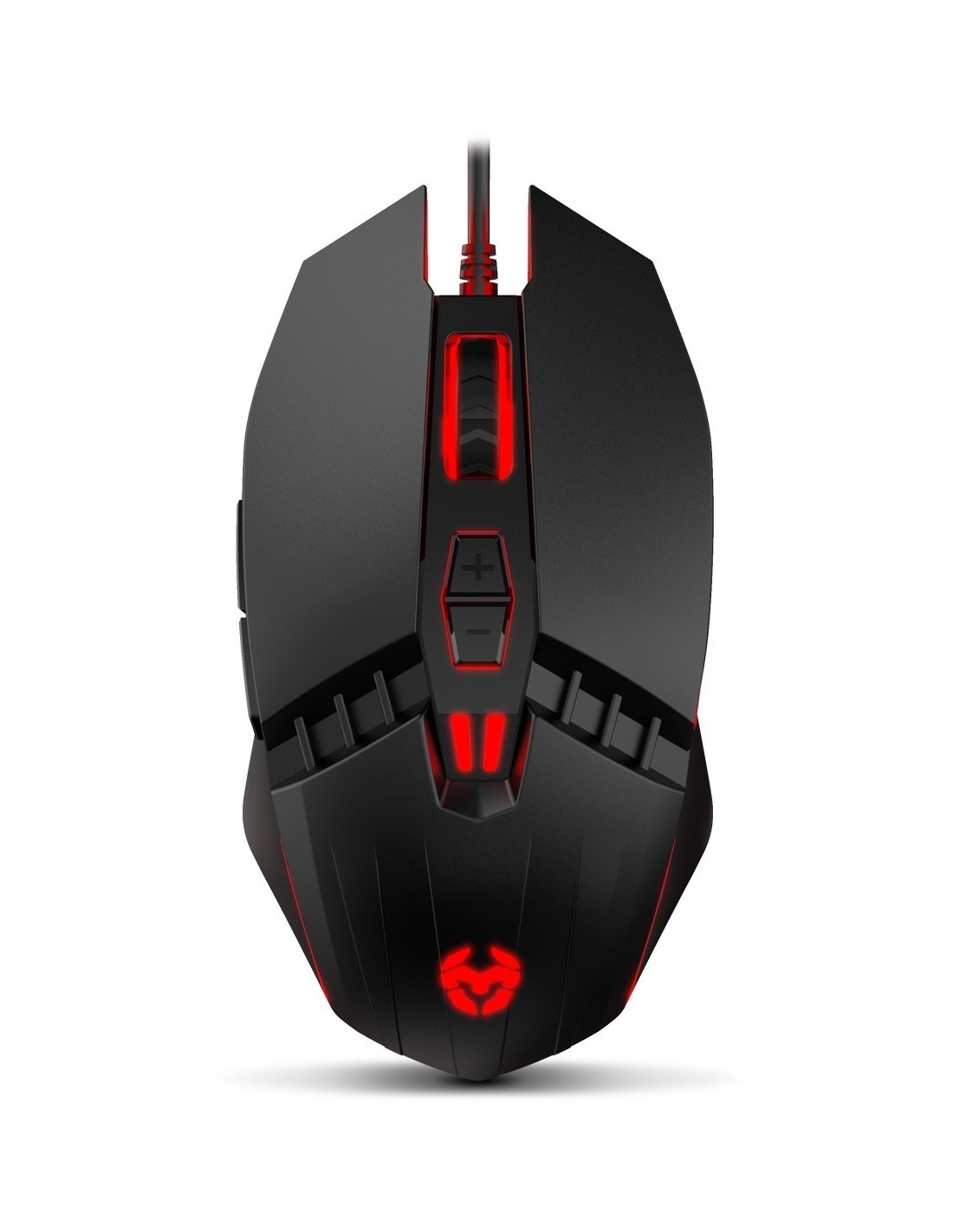 Krom Kalax. Factor de forma: mano derecha. Tecnología de detección de movimientos: Óptico, Interfaz del dispositivo: USB tipo A, Resolución de movimiento: 3200 DPI, Tipo de botones: Botones presionados, Cantidad de botones: 7, Tipo de desplazamiento: Rueda. Iluminación de color: Azul, Verde, Rojo. Fuente de energía: Cable. Color del producto: Negro