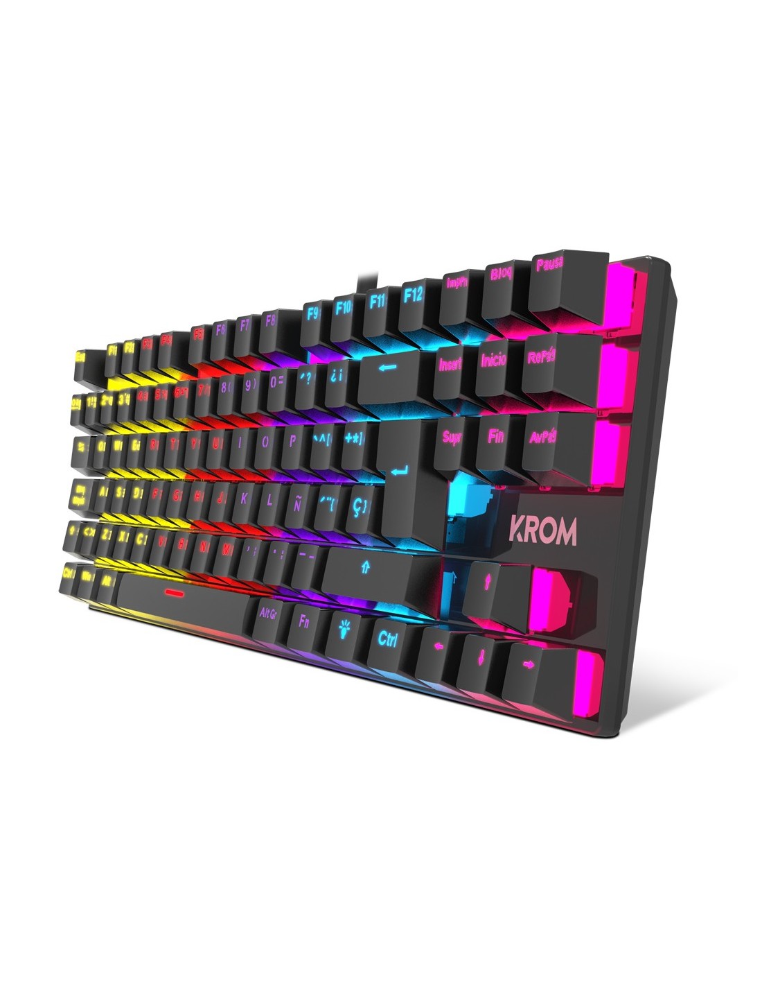 Kasic TKL Krom Kasic TKL es un teclado mecánico con formato TKL que tiene iluminación RGB y switches rojos de excelente calidad. Con tecnología anti-ghosting en 25 de sus teclas y bloqueo de la tecla Windows, este teclado es un buen aliado para los amantes de los teclados compactos.