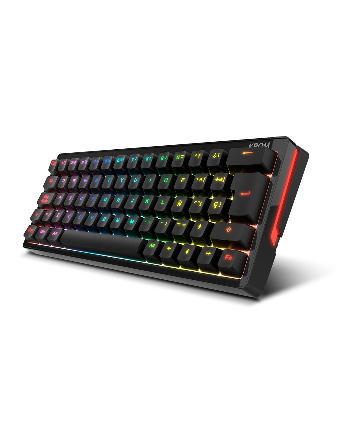 Krom Kreator. Formato del teclado: 60%. Estilo de teclado: Derecho. Tecnología de conectividad: Alámbrico, Interfaz del dispositivo: USB, Interruptor del teclado: Interruptor mecánico, Teclado, cantidad de teclas: 64. Tipo de retroiluminación: LED RGB. Longitud de cable: 1,5 m. Uso recomendado: Juego. Color del producto: Negro