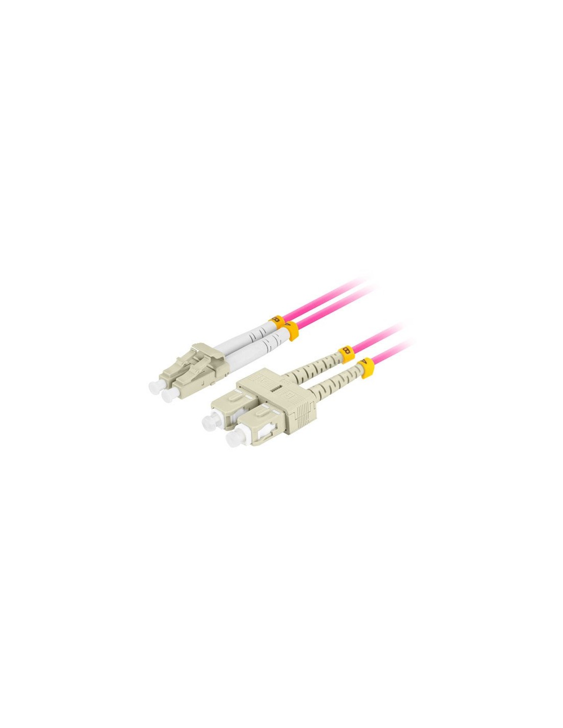 Lanberg FO-LUSU-MD41-0010-VT. Longitud de cable: 1 m, Tipo de cable: LC/SC, Tipo de fibra óptica: OM4, Conector 1: LC, Conector 2: SC, Diámetro de núcleo: 50 µm, Bidireccional completo (Full duplex)