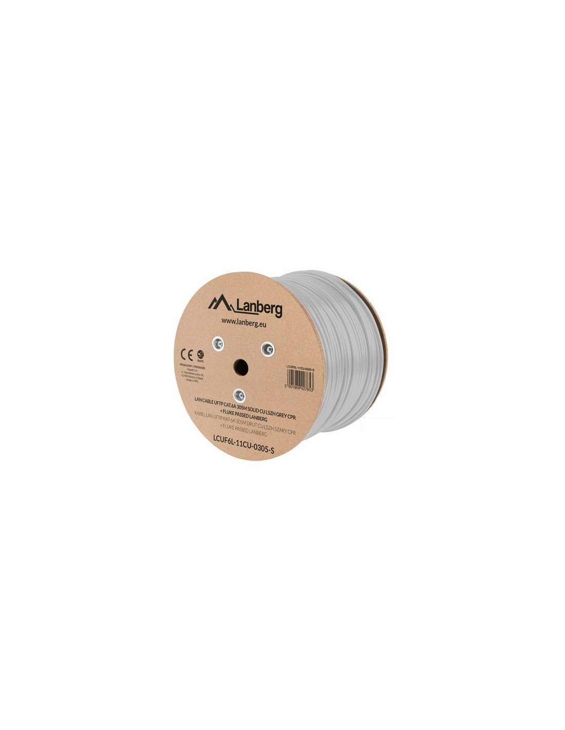Lanberg LCUF6L-11CU-0305-S. Longitud de cable: 305 m, Cable estándar: Cat6a, Blindaje de cable: U/FTP (STP), Velocidad de transferencia de datos: 10000 Mbit/s, Color del producto: Gris