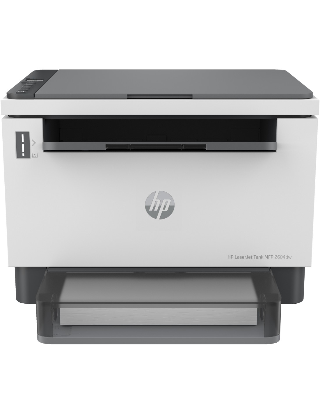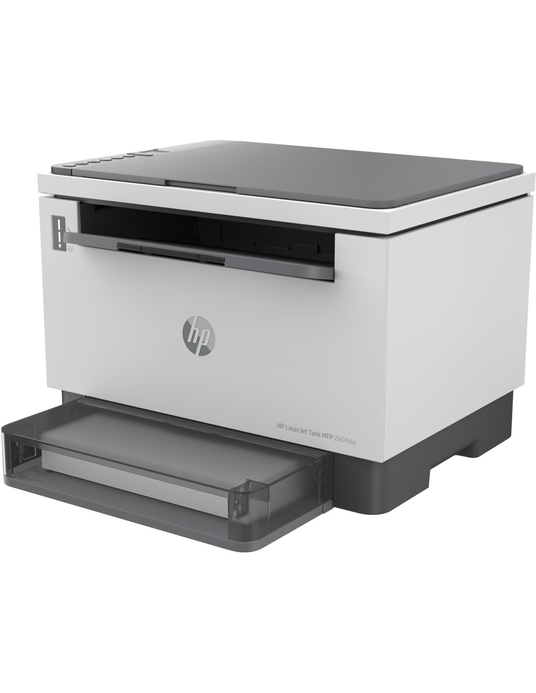 HP LaserJet Impresora multifunción Tank 2604dw. Tecnología de impresión: Laser, Impresión: Impresión a color, Resolución máxima: 600 x 600 DPI. Copiando: Copias en blanco y negro. Escaneando: Escaneo a color, Resolución óptica de escáner: 600 x 600 DPI. Funciones dúplex: Imprimir. Tamaño máximo de papel ISO A-series: A4. Wifi. Impresión directa. Color del producto: Gris