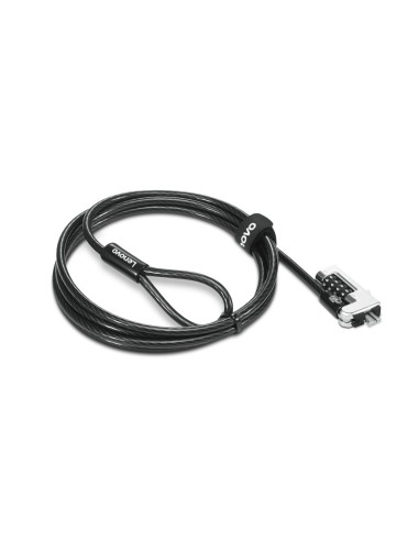 Lenovo 4XE1F30278. Color del producto: Negro, Mejores usos: Universal, Tipo de candado: Cerradura con combinación. Longitud de cable: 1,8 m, Diámetro de cable: 5 mm, Peso: 200 g. Ancho del paquete: 250 mm, Profundidad del paquete: 170 mm, Altura del paquete: 30 mm