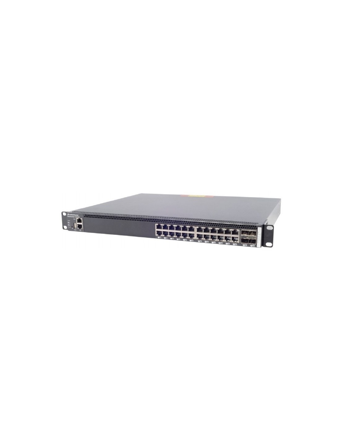 Lenovo RackSwitch G7028. Tipo de interruptor: Gestionado, Capa del interruptor: L2. Puertos tipo básico de conmutación RJ-45 Ethernet: Gigabit Ethernet (10/100/1000), Cantidad de puertos básicos de conmutación RJ-45 Ethernet: 24, Cantidad de puertos USB 2.0: 1, Puerto de consola: RJ-45. Tabla de direcciones MAC: 8000 entradas. Estándares de red: IEEE 802.1D, IEEE 802.1Q, IEEE 802.1p, IEEE 802.1s, IEEE 802.1w, IEEE 802.1x, IEEE 802.3, IEEE.... Conector eléctrico: Conector de alimentación AC-in. Montaje en rack, Factor de forma: 1U