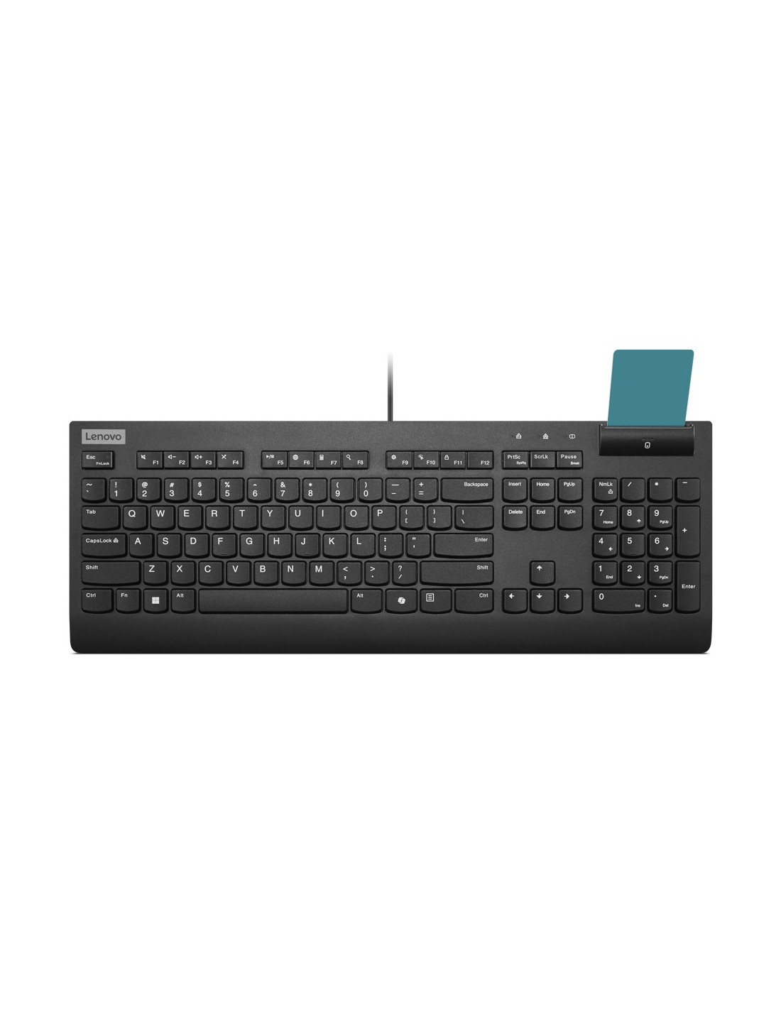 Lenovo Smartcard Wired keyboard II. Formato del teclado: Completo (100%). Estilo de teclado: Derecho. Tecnología de conectividad: Alámbrico, Interfaz del dispositivo: USB, Interruptor del teclado: Plunger key switch, Teclado, cantidad de teclas: 106. Longitud de cable: 2 m. Uso recomendado: Oficina. Color del producto: Negro