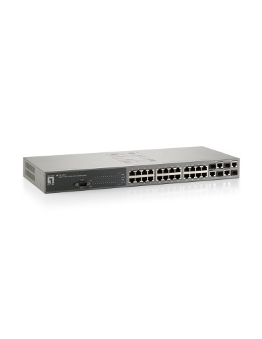 24 puertos Fast Ethernet + 4 puertos Gigabit combo (RJ-45/SFP)