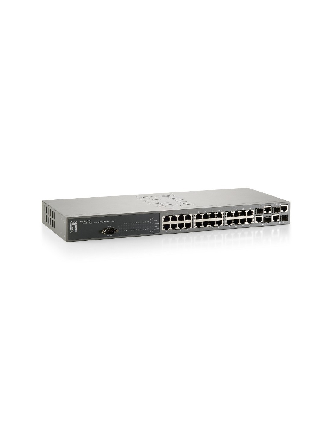 LevelOne FGL-2870. Tipo de interruptor: Gestionado, Capa del interruptor: L2. Cantidad de puertos básicos de conmutación RJ-45 Ethernet: 28, Puerto de consola: RS-232. Tabla de direcciones MAC: 8000 entradas. Estándares de red: IEEE 802.1D, IEEE 802.1p, IEEE 802.1Q, IEEE 802.1v, IEEE 802.1w, IEEE 802.1x, IEEE 802.3ac, IEEE.... Conector eléctrico: Toma de entrada de CC