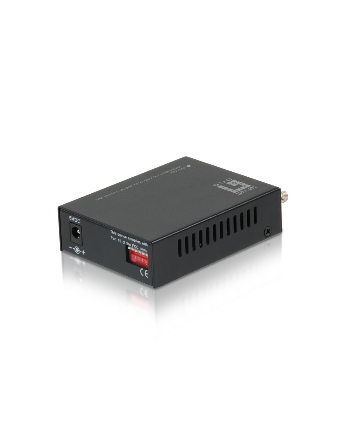 LevelOne FVT-2002. Rango máximo de transferencia de datos: 100 Mbit/s, Interfaz de convertidor de entrada: 10Base-T, 100Base-TX, Interfaz de convertidor de salida: 100Base-FX. Distancia de transferencia máxima: 2000 m, Longitud de onda: 1310 nm, Diámetros de fibra de cable soportado: 50/125,62.5/125 µm. Indicadores LED: Actividad, Enlace, Color del producto: Negro. Conector fibra óptica: ST, Tecnología de conectividad: Alámbrico. Voltaje de entrada: 5 V, Corriente de entrada: 1 A