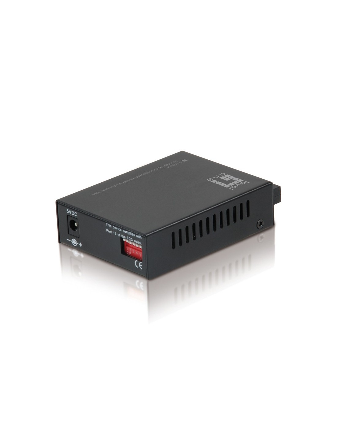 LevelOne FVT-2401. Rango máximo de transferencia de datos: 100 Mbit/s, Estándares de red: IEEE 802.3, IEEE 802.3u, IEEE 802.3x, Sistema de dúplex: Completo, Semi (dúplex). Distancia de transferencia máxima: 40000 m, Longitud de onda: 1310 nm, Estructura de modo de fibra: Monomodo. Indicadores LED: Actividad, Enlace, Poder, Color del producto: Negro. Conector fibra óptica: SC, Tecnología de conectividad: Alámbrico. Voltaje de entrada: 5 V, Corriente de entrada: 1 A