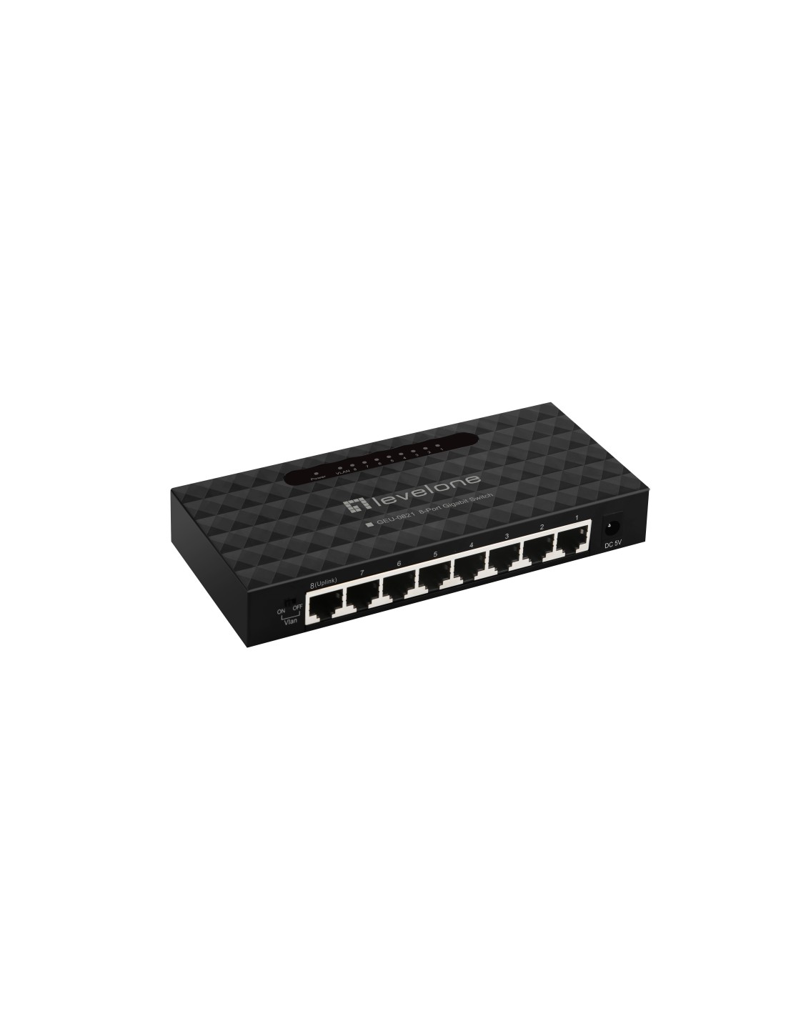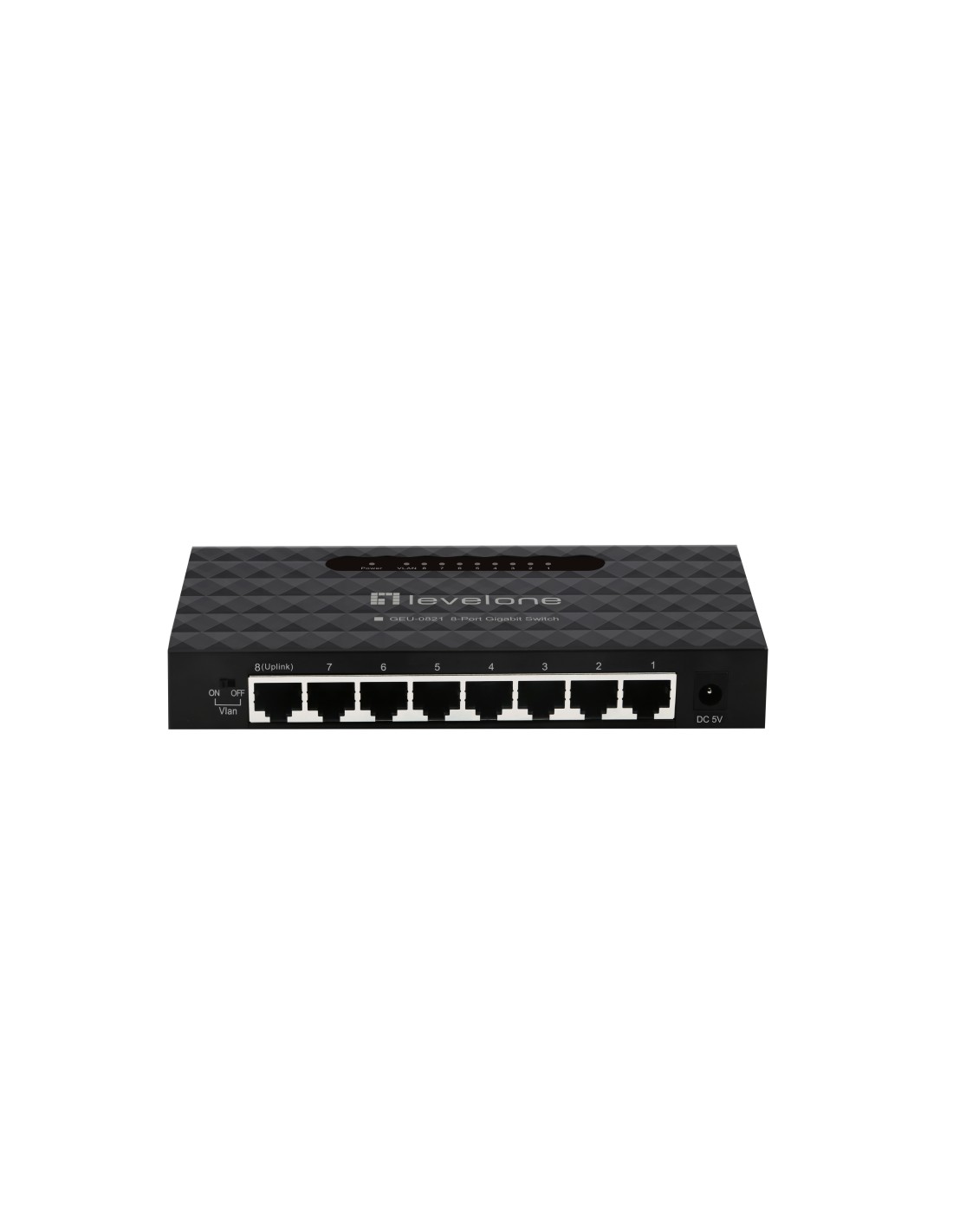 LevelOne GEU-0821. Tipo de interruptor: Gestionado. Puertos tipo básico de conmutación RJ-45 Ethernet: Gigabit Ethernet (10/100/1000), Cantidad de puertos básicos de conmutación RJ-45 Ethernet: 8. Bidireccional completo (Full duplex). Tabla de direcciones MAC: 8000 entradas. Voltaje de entrada DC: 5 V. Montaje de pared
