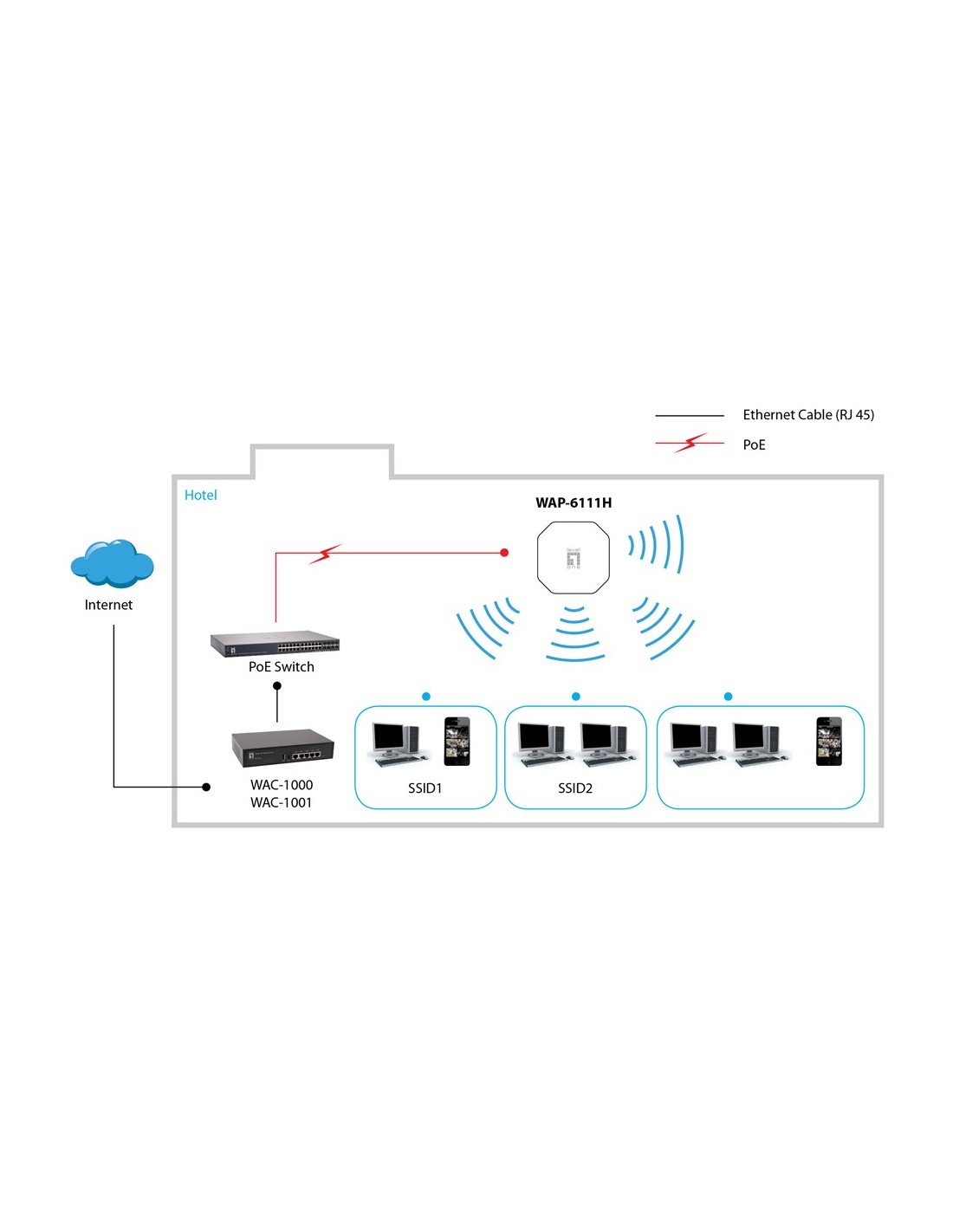 LevelOne N300. 2,4 GHz. Algoritmos de seguridad soportados: AES, SSID, TKIP, WEP, WPA, WPA-PSK. Ethernet LAN, velocidad de transferencia de datos: 10,100 Mbit/s. Energía sobre Ethernet (PoE). Color del producto: Blanco