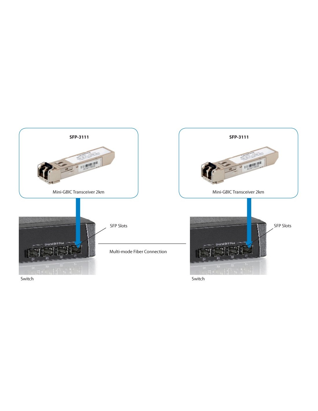 El SFP-3111 de LevelOne es un transceptor SFP multimodo de alto rendimiento y costo efectivo. Diseñado para usarse con Gigabit Ethernet, proporciona una tasa de transferencia de datos de hasta 1.25Gbps en modo bidireccional en un solo cable de fibra dúplex. Cuando se usa con cables de fibra 50 y 62.5-micrón, puede alcanzar una distancia de hasta 2 km. El transceptor SFP-3111 funciona usando una longitud de onda de 1310nm con una fuente de luz Diodo Laser-FP y tiene un conector LC.