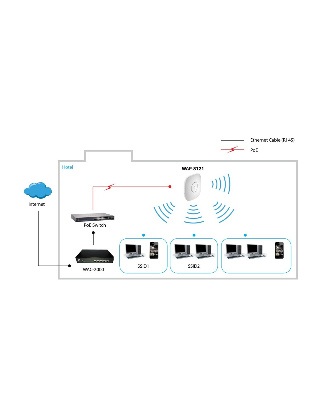 LevelOne WAP-8121. 2,4 GHz, 5 GHz, Rango máximo de transferencia de datos: 433 Mbit/s. Algoritmos de seguridad soportados: 64-bit WEP, 128-bit WEP, WPA, WPA2, WPA2-AES, WPA2-PSK, WPA2-TKIP. Ethernet LAN, velocidad de transferencia de datos: 10,100,1000 Mbit/s. Energía sobre Ethernet (PoE). Color del producto: Blanco