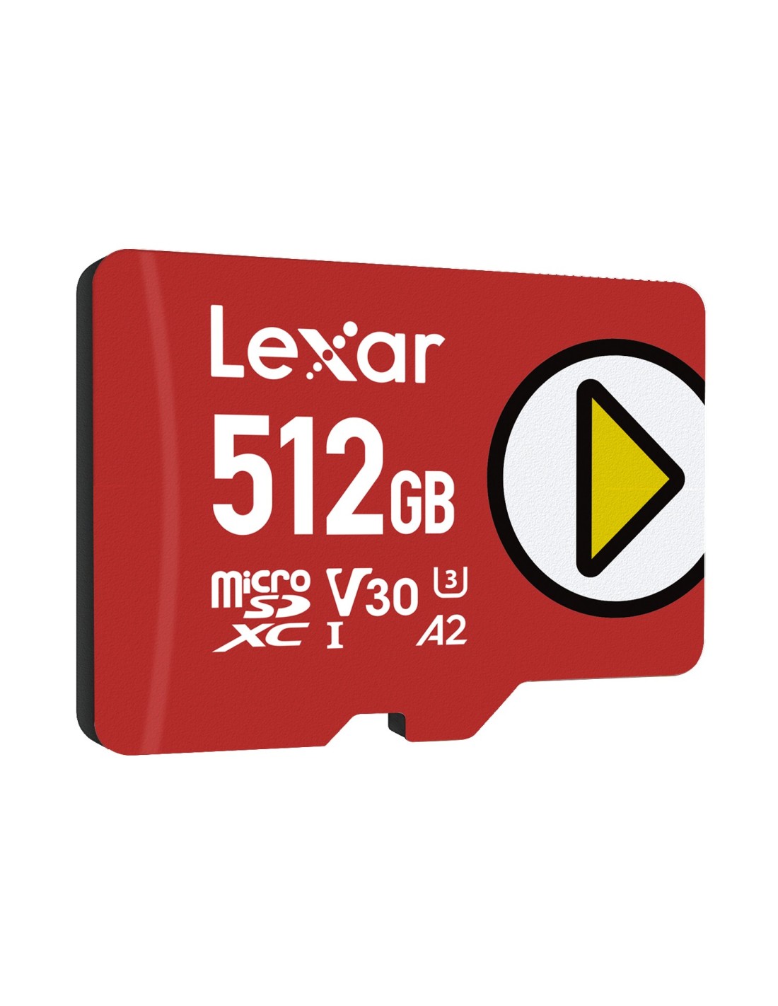 Lexar PLAY microSDXC UHS-I Card. Capacidad: 512 GB, Tipo de tarjeta flash: MicroSDXC, Clase de memoria flash: Clase 10, Tipo de memoria interna: UHS-I, Velocidad de lectura: 150 MB/s, Clase de velocidad UHS: Class 3 (U3), Clase de velocidad de vídeo: V30. Color del producto: Rojo
