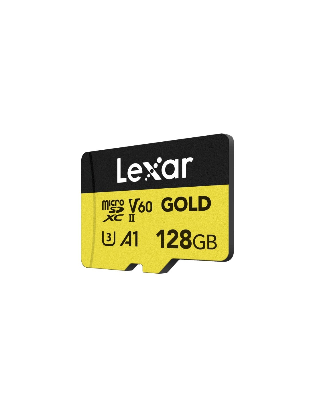Lexar Professional GOLD. Capacidad: 128 GB, Tipo de tarjeta flash: MicroSDXC, Tipo de memoria interna: UHS-II, Velocidad de lectura: 280 MB/s, Velocidad de escritura: 100 MB/s, Clase de velocidad UHS: Class 3 (U3), Clase de velocidad de vídeo: V60. Color del producto: Negro, Amarillo