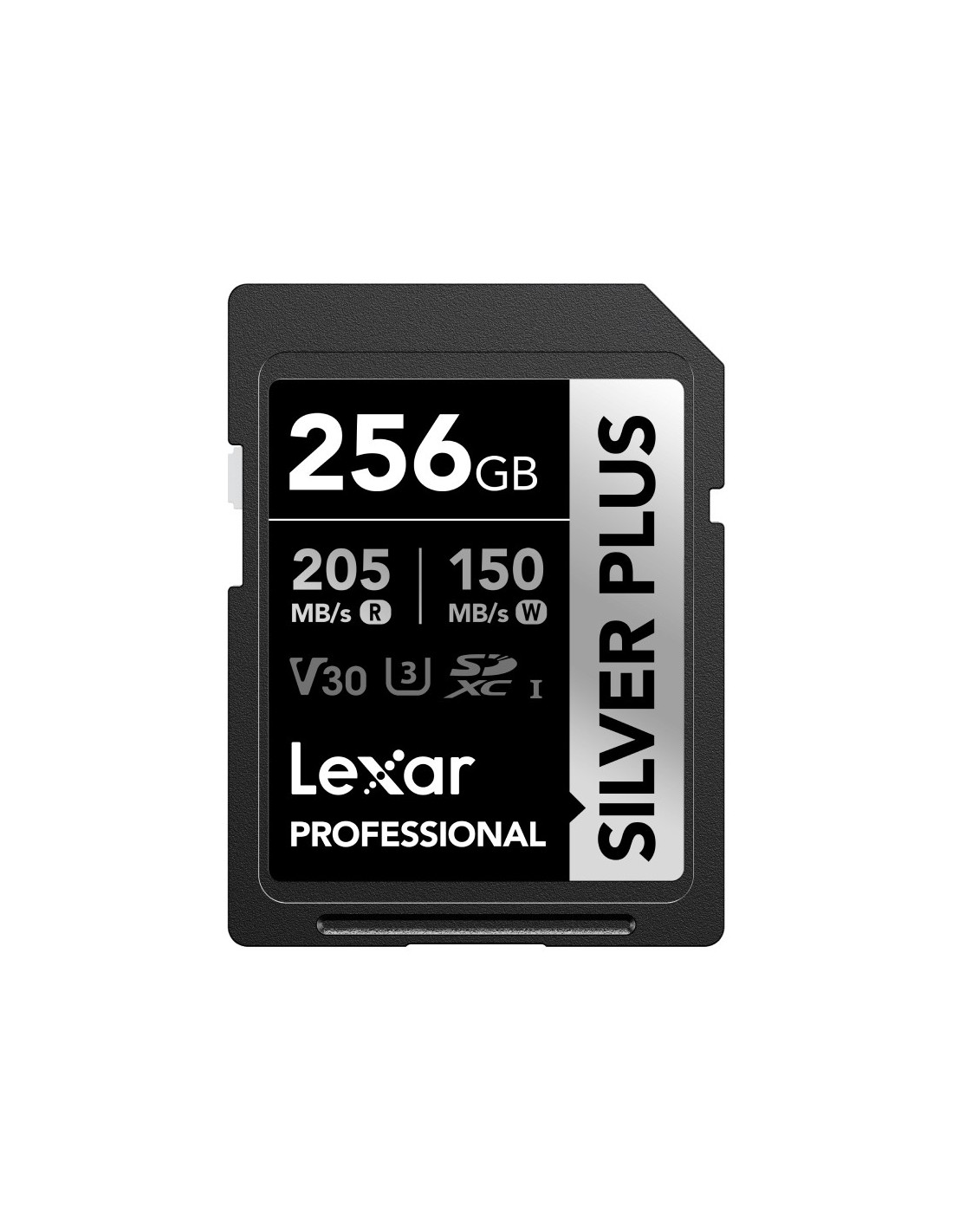 Lexar Professional SILVER PLUS. Capacidad: 256 GB, Tipo de tarjeta flash: SDXC, Clase de memoria flash: Clase 3, Tipo de memoria interna: UHS-I, Velocidad de lectura: 205 MB/s, Velocidad de escritura: 150 MB/s, Clase de velocidad UHS: Class 3 (U3), Clase de velocidad de vídeo: V60. Funciones de protección: Resistente a impactos, Protección contra campos magnéticos, Resistente a golpes, Resistente a la..., Color del producto: Negro, Plata