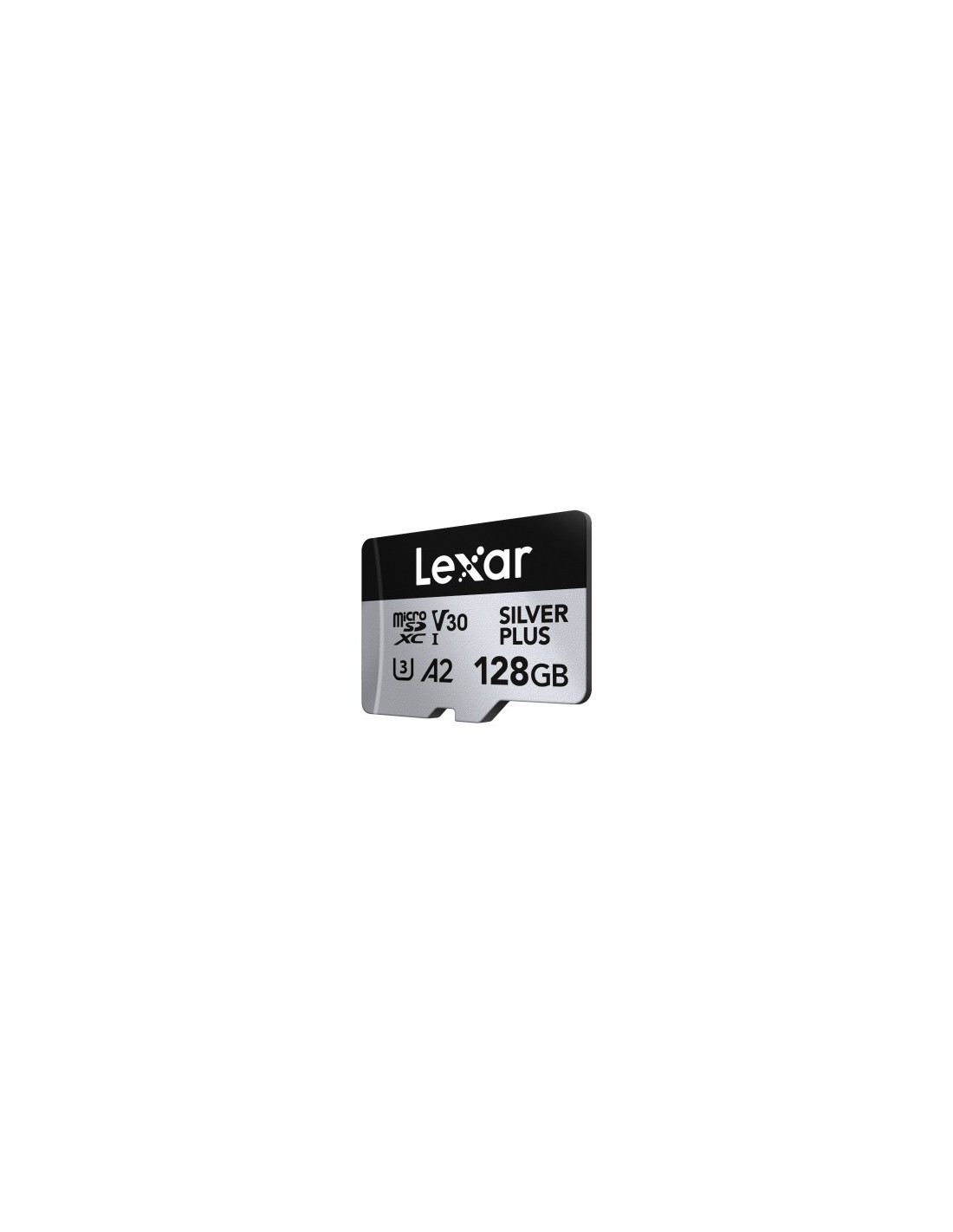 Lexar Professional SILVER PLUS. Capacidad: 128 GB, Tipo de tarjeta flash: MicroSDXC, Tipo de memoria interna: UHS-I, Velocidad de lectura: 205 MB/s, Velocidad de escritura: 150 MB/s, Clase de velocidad UHS: Class 3 (U3), Clase de velocidad de vídeo: V30. Funciones de protección: Protección contra caídas, Resistente a impactos, Protección contra campos magnéticos,..., Color del producto: Negro, Plata