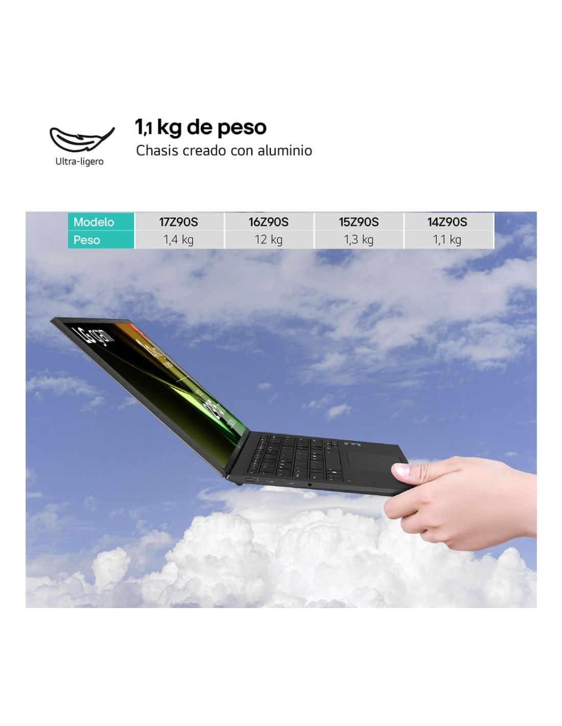 LG Gram 14Z90S, Intel Core Ultra 5, 35,6 cm (14"), 1920 x 1200 Pixeles, 16 GB, 512 GB, Windows 11 Pro