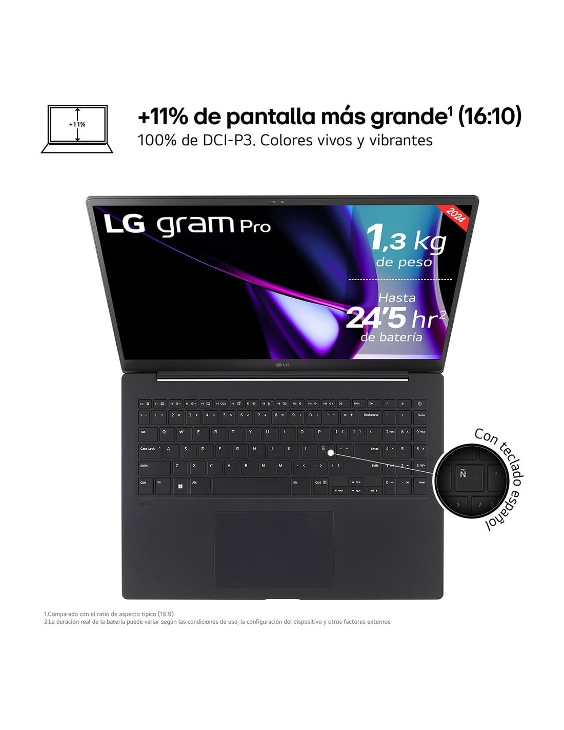 LG Gram Pro 16Z90SP Intel Core Ultra 7 155H Portátil 40,6 cm (16") WQXGA+ 32 GB LPDDR5-SDRAM 1 TB SSD Wi-Fi 6E (802.11ax)