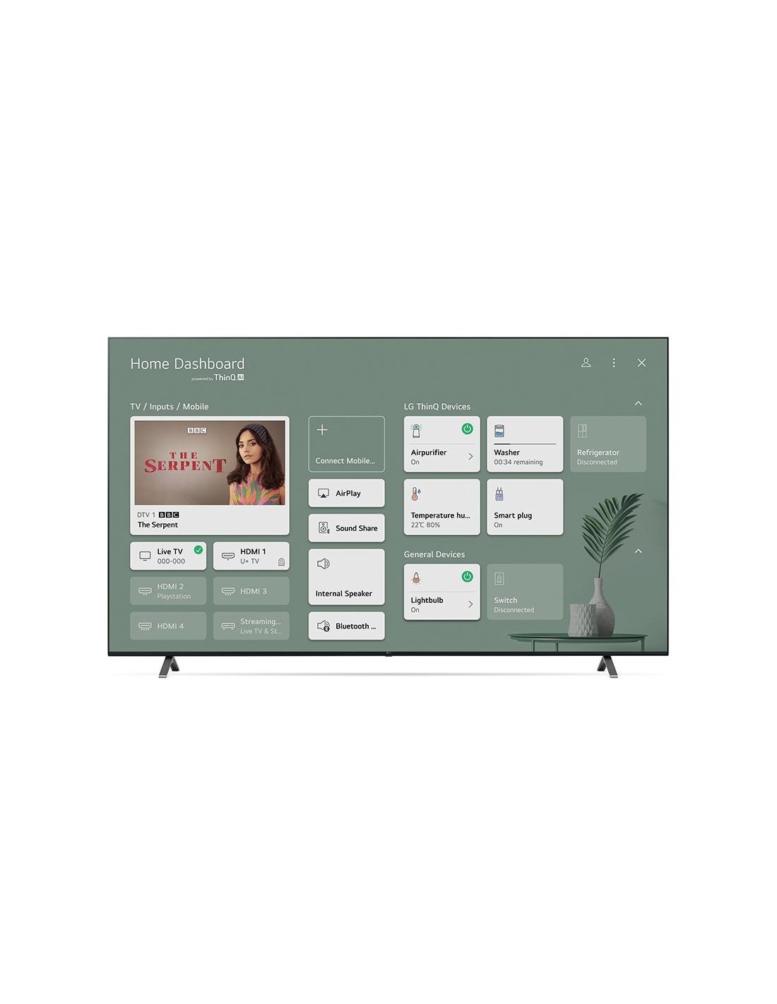 LG 75UP80006LR. Diagonal de la pantalla: 190,5 cm (75"), Resolución de la pantalla: 3840 x 2160 Pixeles, Tipo HD: 4K Ultra HD, Tecnología de visualización: LED, Forma de la pantalla: Plana, Tipo de retroiluminación LED: Direct-LED BLU. Smart TV. Tecnología de interpolación de movimiento: Motion Rate 60, Relación de aspecto nativa: 16:9. Formato de señal digital: DVB-S, DVB-S2, DVB-T, DVB-T2. Wifi, Ethernet. Color del producto: Negro