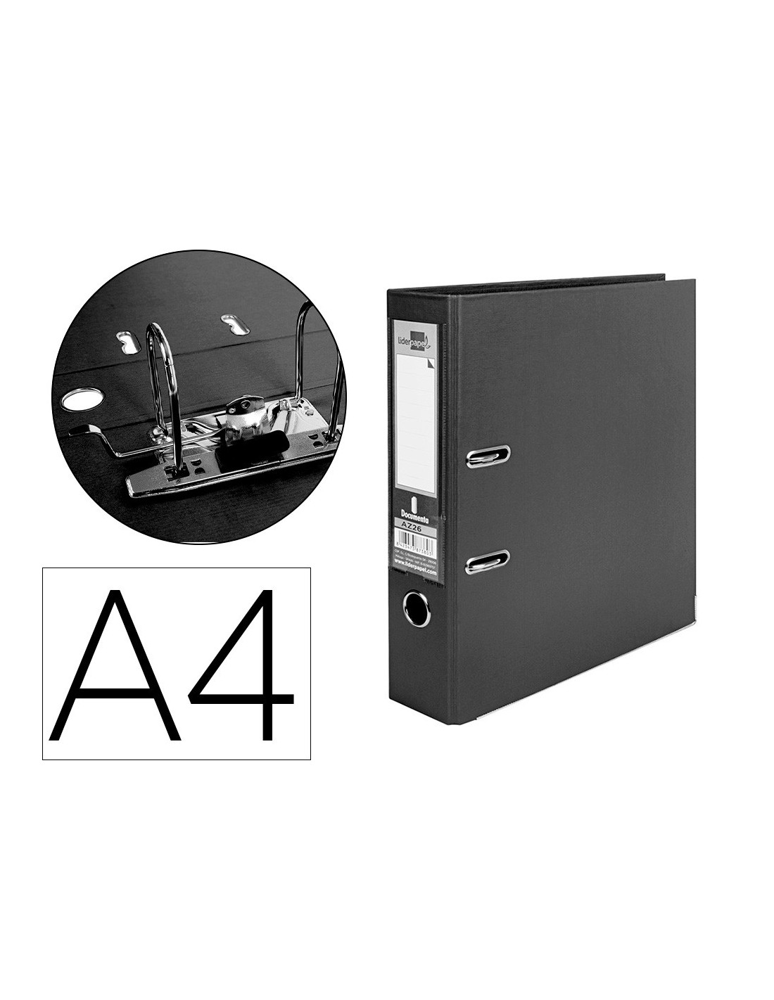 Liderpapel AZ26. Tipo: Carpeta convencional, Formato: A4, Color del producto: Negro. Ancho: 320 mm, Profundidad: 290 mm, Altura: 75 mm. Cantidad por paquete: 1 pieza(s)