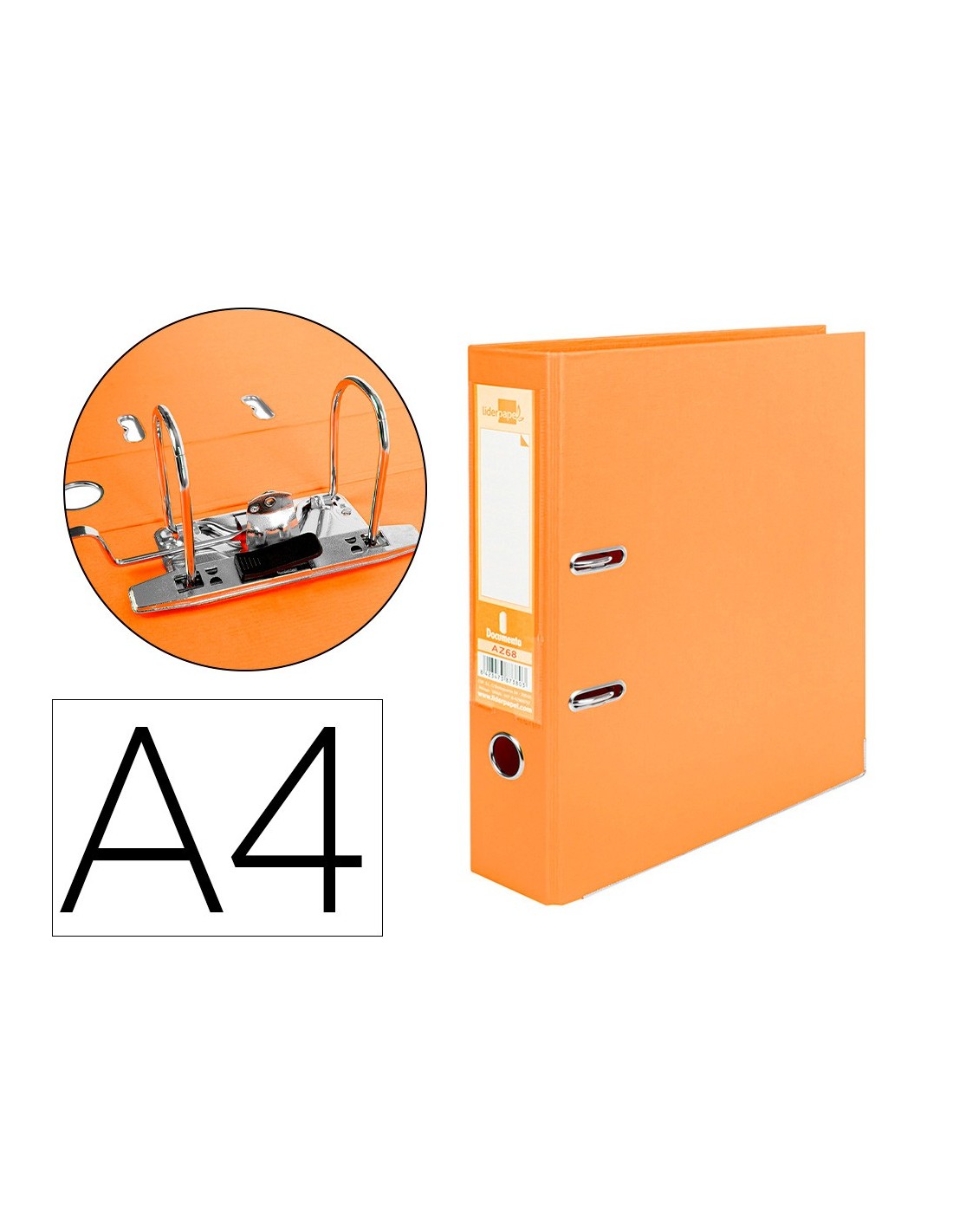 Liderpapel AZ68. Formato: A4, Forma de anilla: Anilla en D, Utilizar con: Almacenamiento. Ancho: 320 mm, Profundidad: 283 mm, Altura: 75 mm. Cantidad por paquete: 1 pieza(s)