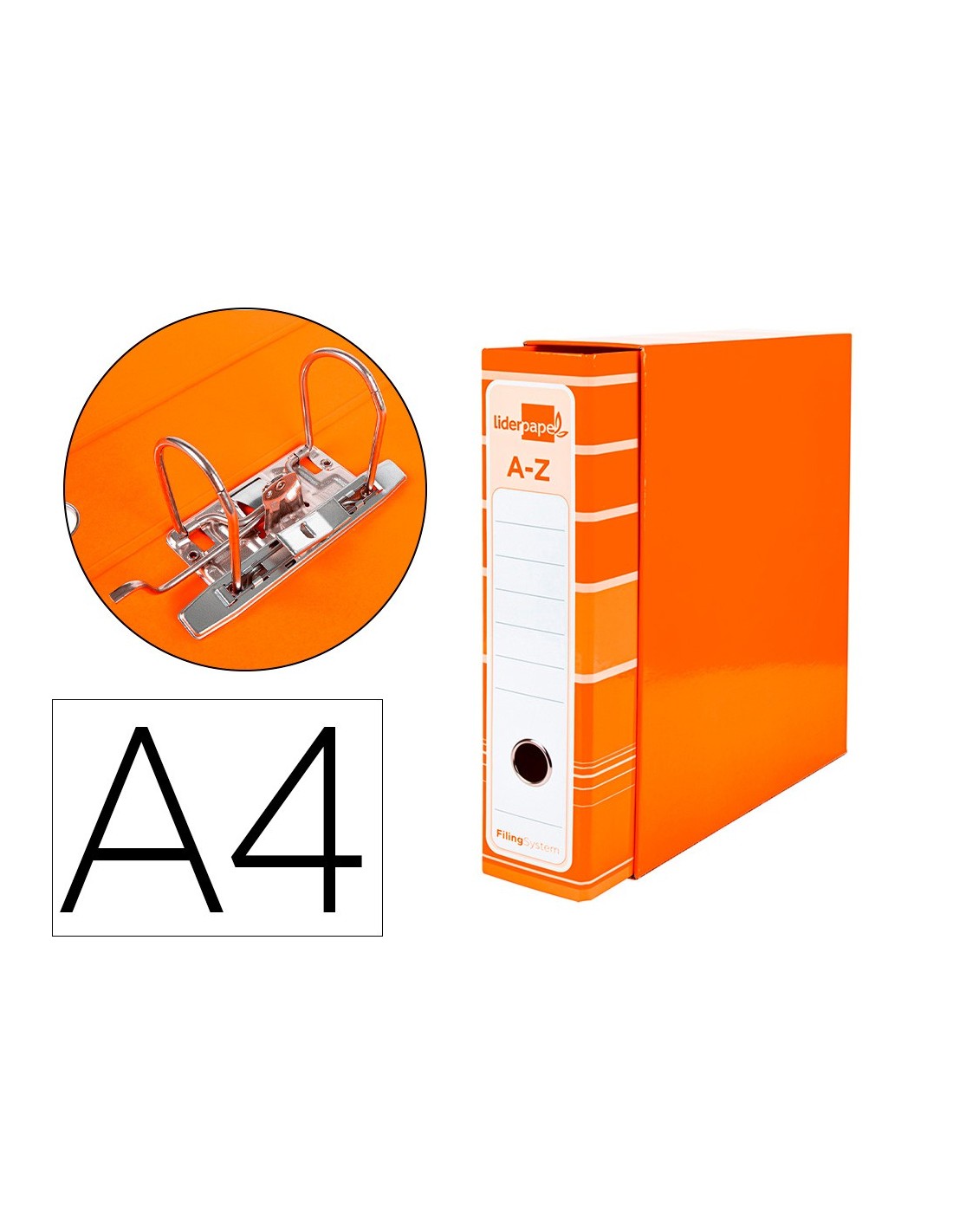 Liderpapel AZ90. Tipo: Carpeta convencional, Formato: A4, Color del producto: Naranja. Ancho: 325 mm, Profundidad: 290 mm, Altura: 85 mm. Cantidad por paquete: 1 pieza(s)