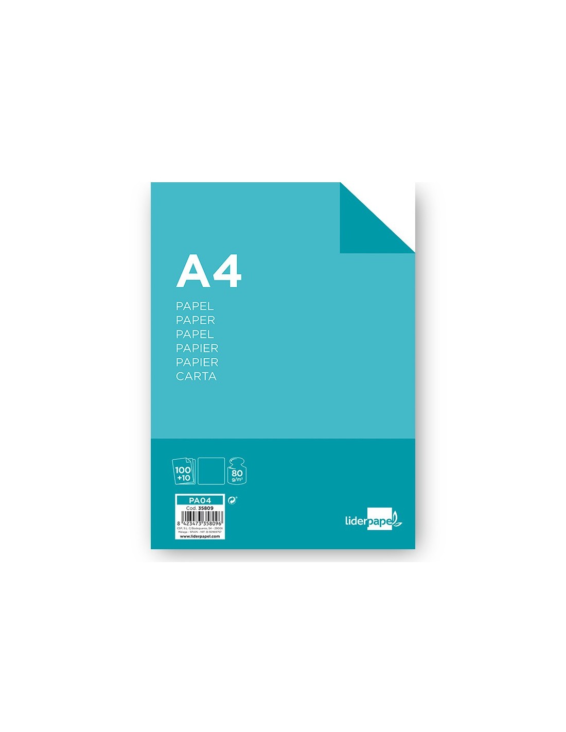 Liderpapel PA04, Para hacer copias, A4 (210x297 mm), Alise, 100 hojas, 80 g/m², Blanco