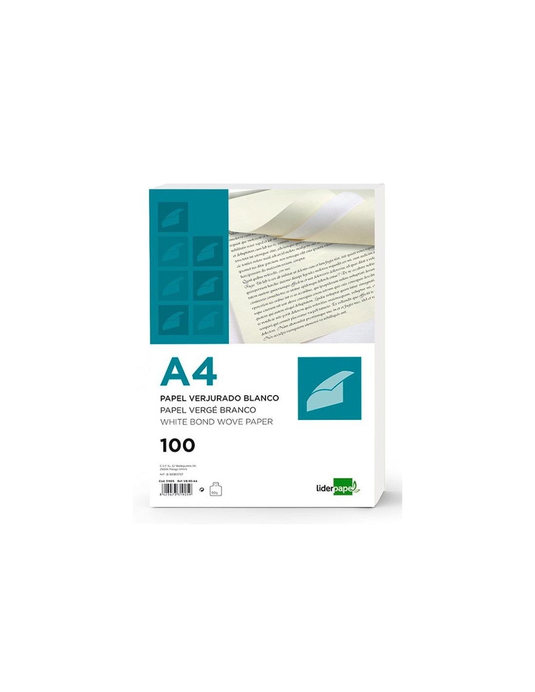 Liderpapel Papel Verjurado. 100 hojas. Uso recomendado: Impresión láser/inyección de tinta, Tamaño del papel: A4 (210x297 mm), Hojas por paquete: 100 hojas