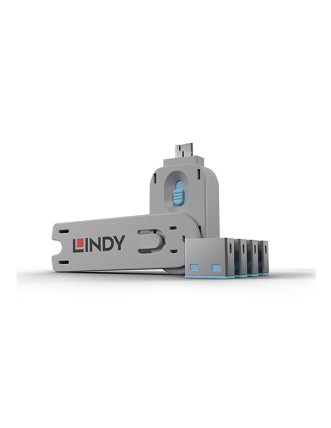 Lindy 40452, Bloqueador de puerto + clave, USB tipo A, Azul, Acrilonitrilo butadieno estireno (ABS), 5 pieza(s), Bolsa de plástico
