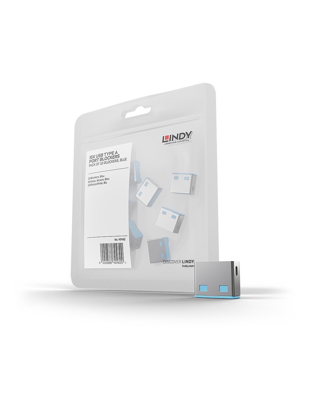 Lindy 40462, Bloqueador de puerto, USB tipo A, Azul, Acrilonitrilo butadieno estireno (ABS), 10 pieza(s), Bolsa de plástico