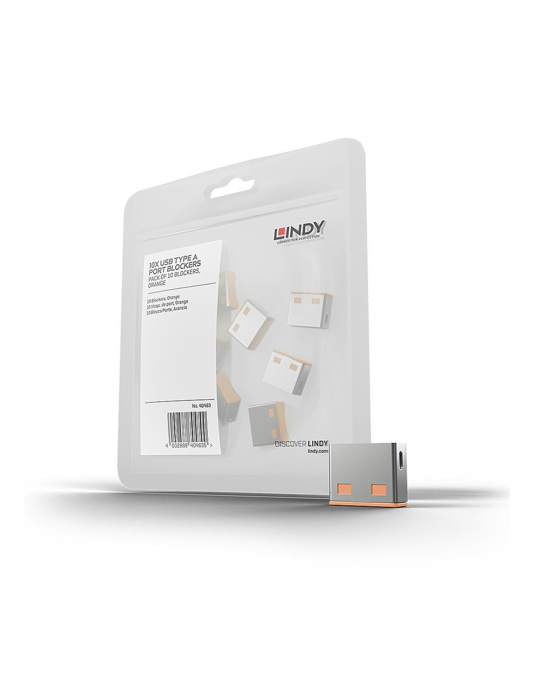 Lindy 40463, Bloqueador de puerto, USB tipo A, Naranja, Acrilonitrilo butadieno estireno (ABS), 10 pieza(s), Bolsa de plástico