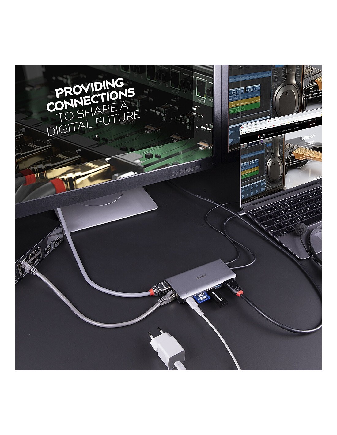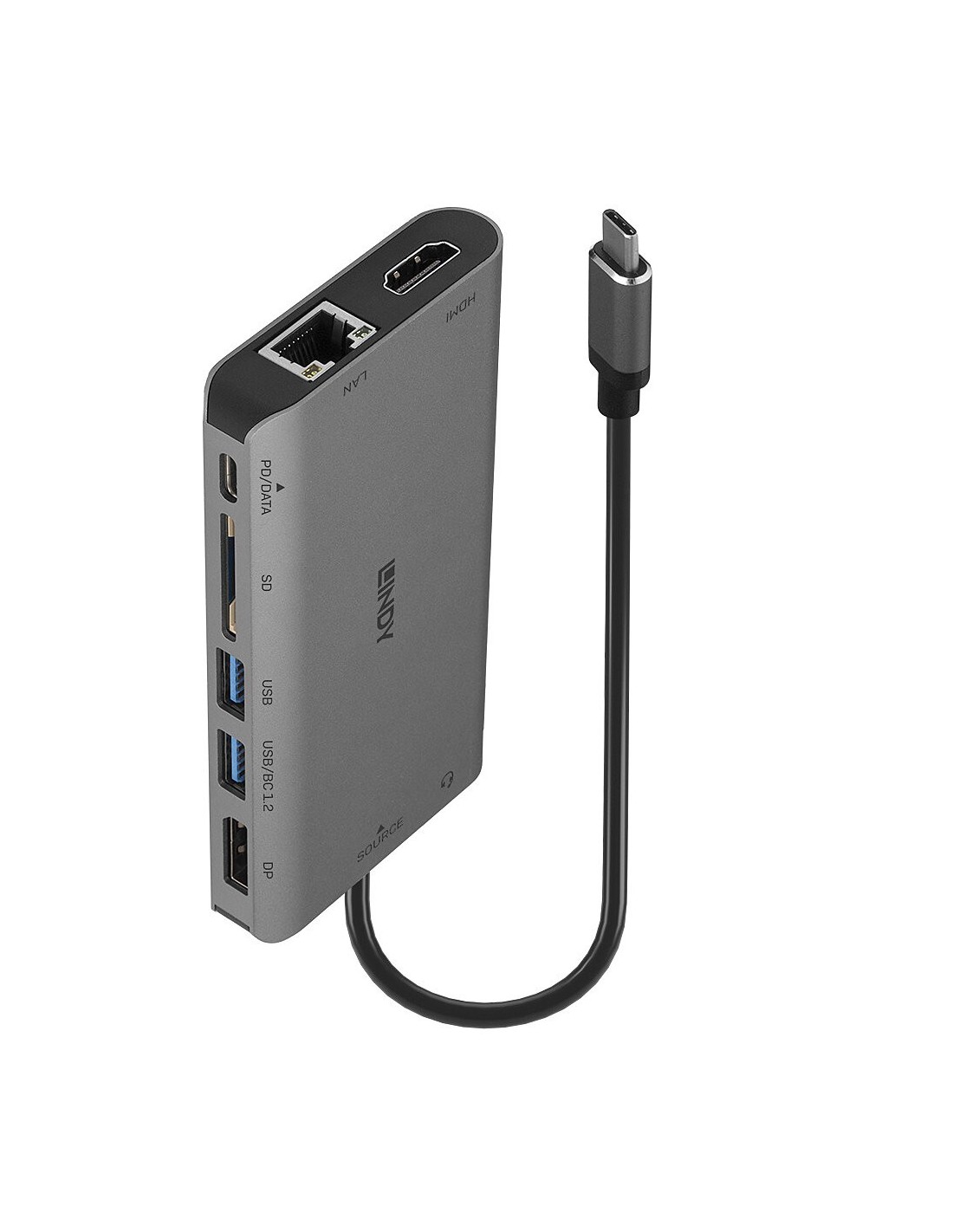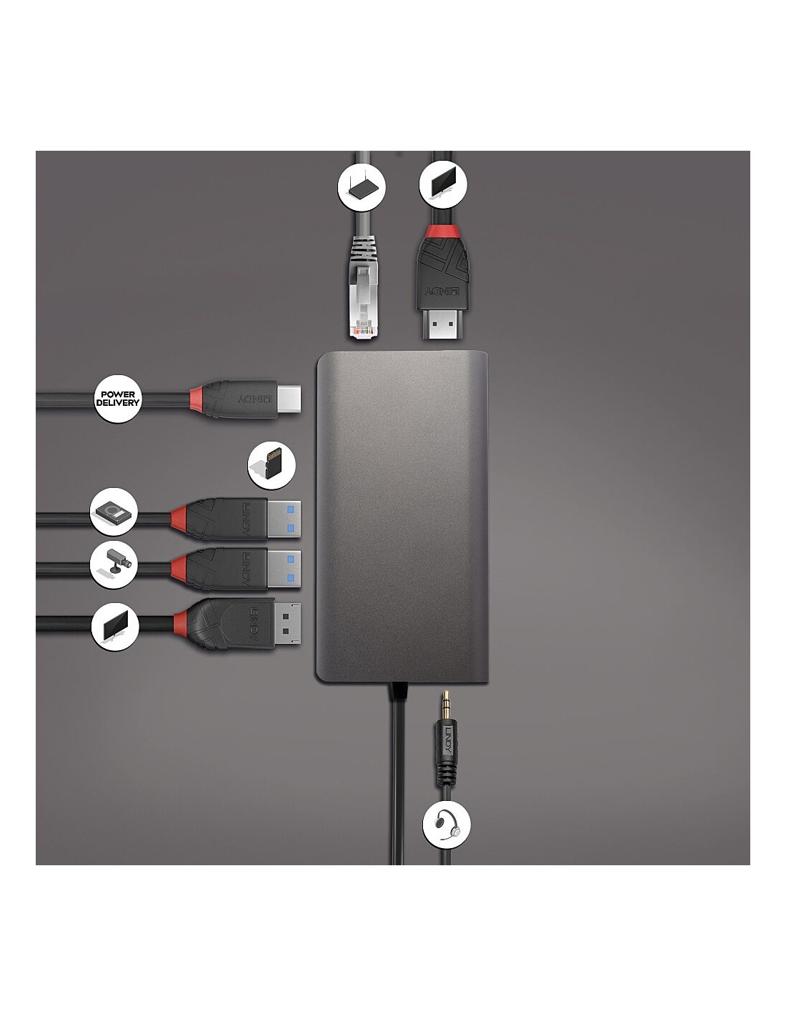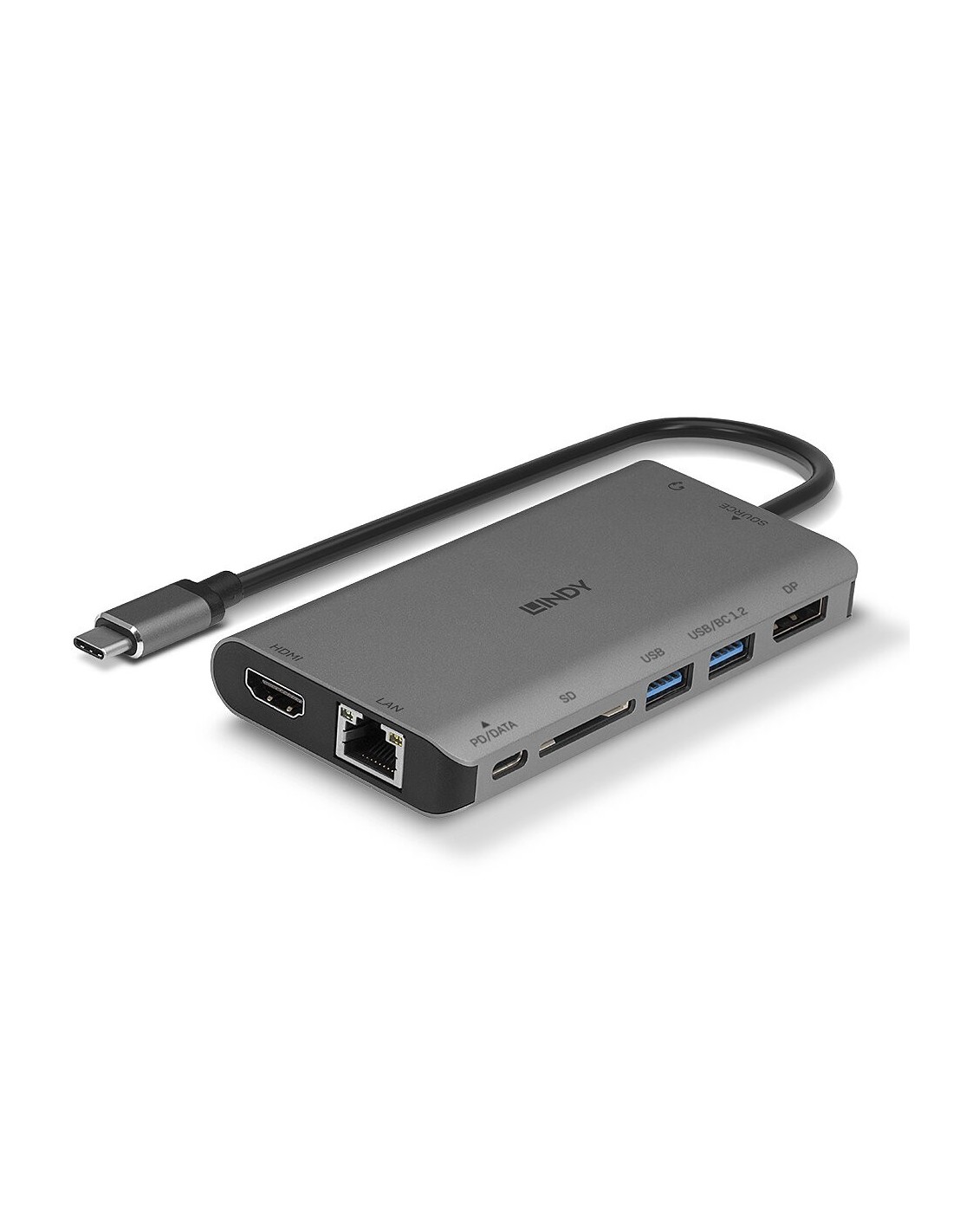 Lindy 43323. Tecnología de conectividad: Alámbrico, Interfaz de host: USB 3.2 Gen 1 (3.1 Gen 1) Type-C, Entrega de energía USB (USB Power Delivery) de hasta: 100 W. Ethernet LAN, velocidad de transferencia de datos: 1000 Mbit/s. Color del producto: Negro, Gris, Tarjetas de memoria compatibles: SD, Velocidad de transferencia de datos: 5 Gbit/s. Alimentación: USB. Ancho: 116,5 mm, Profundidad: 61 mm, Altura: 16 mm