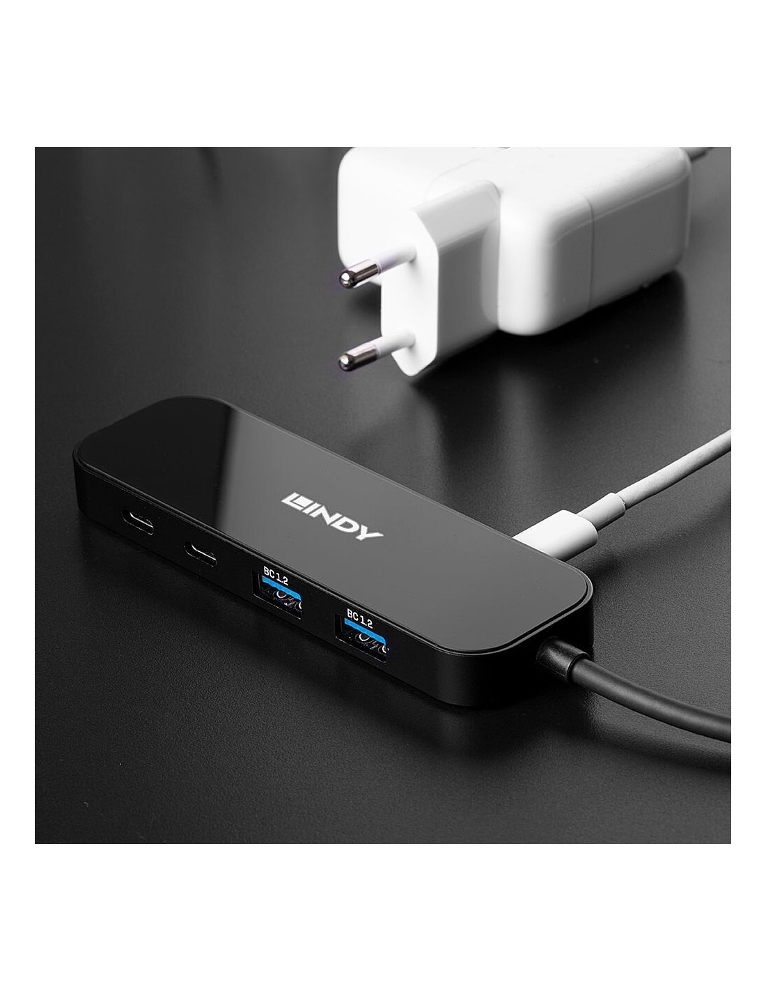 Lindy 43334, USB 3.2 Gen 2 (3.1 Gen 2) Type-C, USB 3.2 Gen 2 (3.1 Gen 2) Type-A, USB 3.2 Gen 2 (3.1 Gen 2) Type-C, 10000 Mbit/s, Negro, Acrilonitrilo butadieno estireno (ABS), Aluminio, Vidrio templado, 100 W