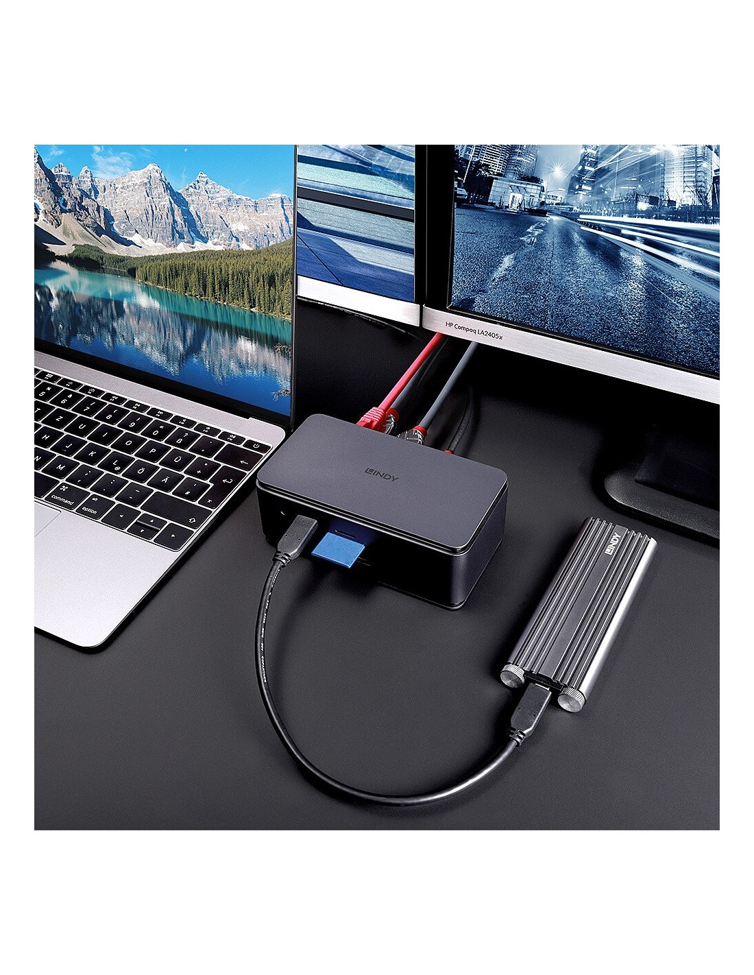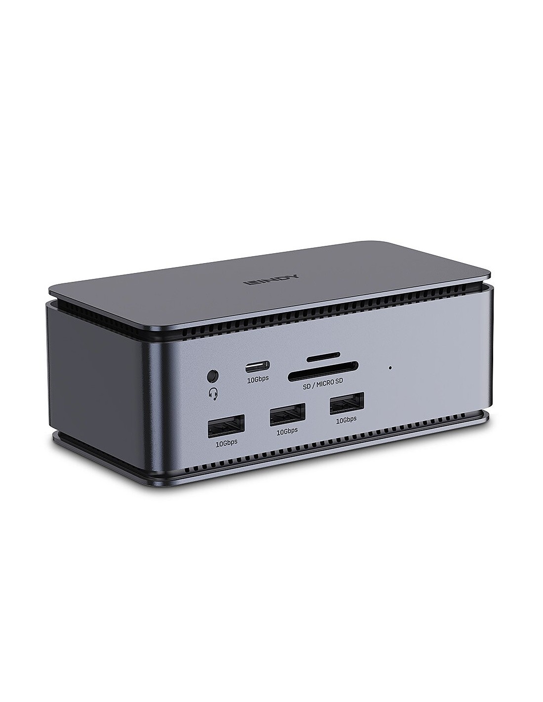 Lindy 43372. Tecnología de conectividad: Acoplamiento, Interfaz de host: USB4, Entrega de energía USB (USB Power Delivery) de hasta: 100 W. Ethernet LAN, velocidad de transferencia de datos: 1000 Mbit/s. Color del producto: Antracita, Tarjetas de memoria compatibles: MicroSD (TransFlash), SD, Velocidad de transferencia de datos: 1 Gbit/s. Alimentación: USB, Consumo de energía (max): 20 W. Ancho: 129 mm, Profundidad: 69,5 mm, Altura: 48 mm