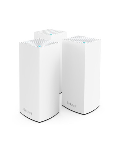 Linksys Atlas 6. Color del producto: Blanco, Tipo de antena: Interno, Tipo de producto: Sistema de malla. Banda Wi-Fi: Doble banda (2,4 GHz / 5 GHz), Estándar Wi-Fi: Wi-Fi 6 (802.11ax), Tasa de transferencia de datos WLAN (máx.): 3000 Mbit/s. Frecuencia del procesador: 1 GHz. Peso: 526,16 g. Número de productos incluidos: 3 pieza(s), Número de unidades incluidas: 3 pieza(s)