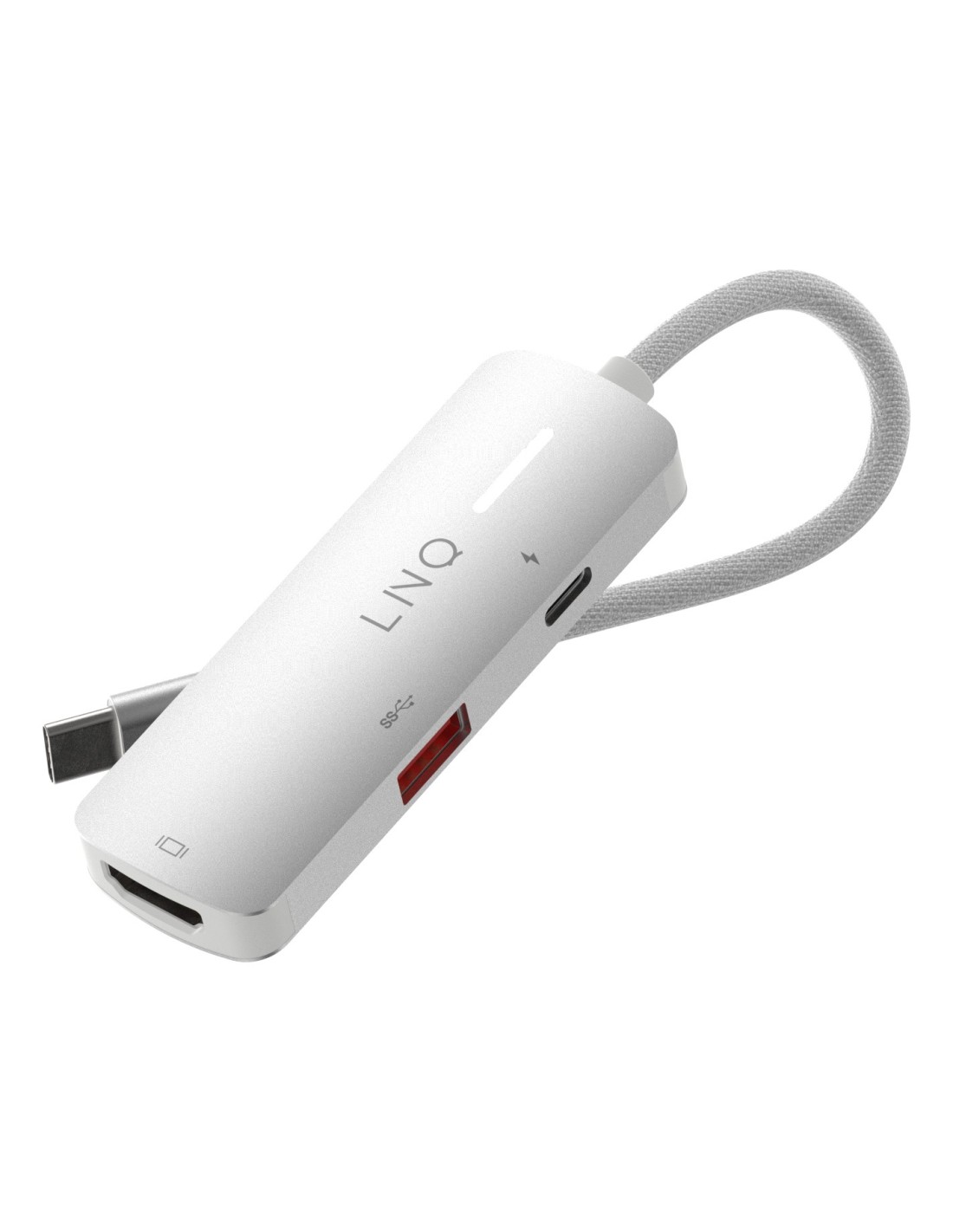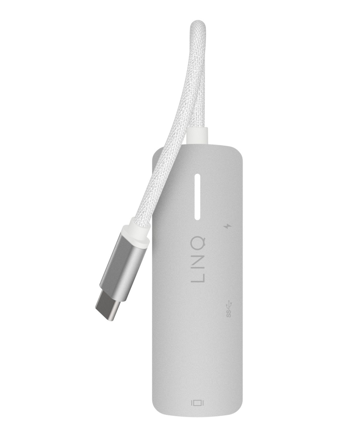 LINQ 4K HDMI Adapter with PD and USB-A, Alámbrico, USB 3.2 Gen 1 (3.1 Gen 1) Type-C, 140 W, Gris, Blanco, Acrilonitrilo butadieno estireno (ABS), Aluminio, Policarbonato (PC), China
