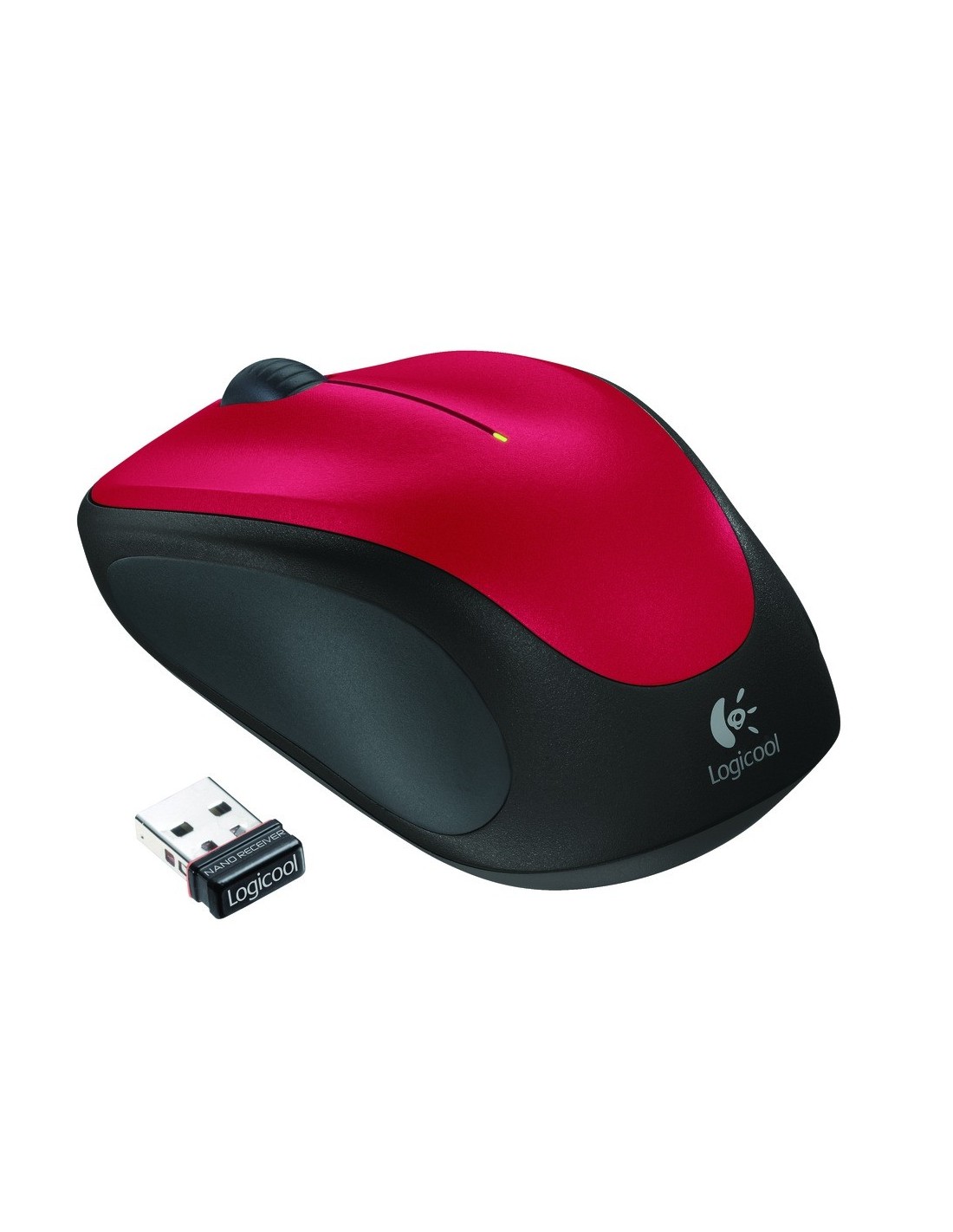 Logitech 910-002496. Factor de forma: Ambidextro. Tecnología de detección de movimientos: Óptico, Interfaz del dispositivo: RF inalámbrico, Tipo de botones: Botones presionados, Cantidad de botones: 3, Tipo de desplazamiento: Rueda. Fuente de energía: Baterías. Color del producto: Rojo