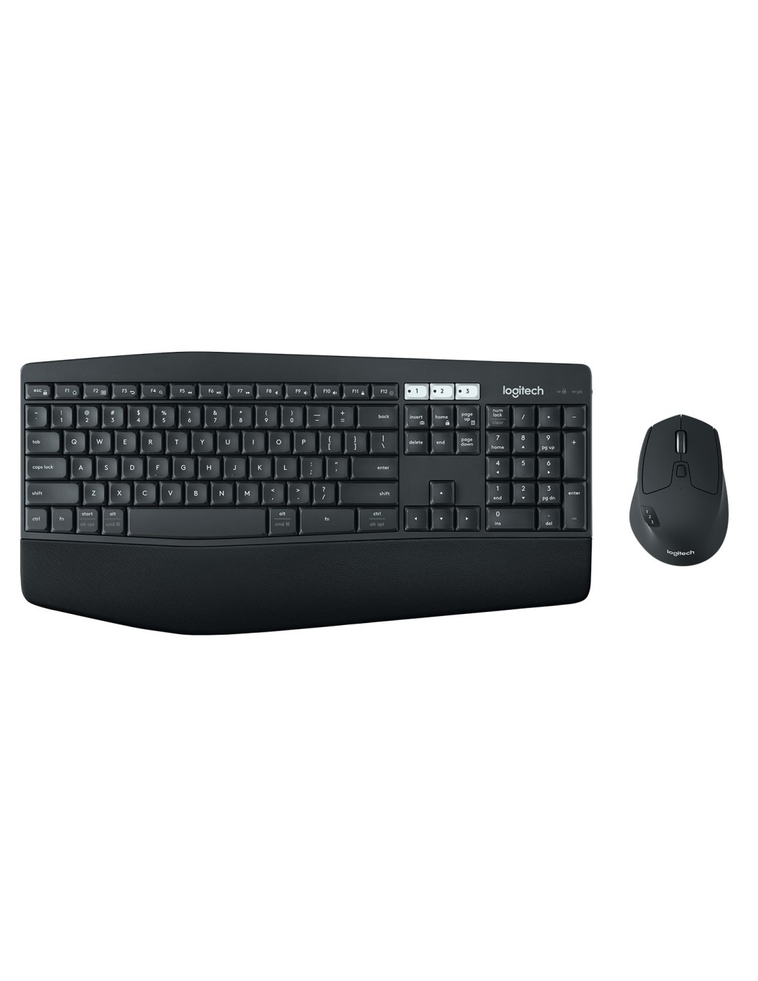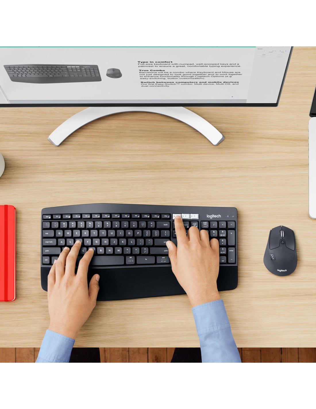 Logitech 920-008221. Formato del teclado: Completo (100%). Estilo de teclado: Derecho. Tecnología de conectividad: Inalámbrico, Interfaz del dispositivo: RF Wireless + Bluetooth, Diseño de teclado: QWERTZ. Descansa muñecas. Uso recomendado: Universal. Color del producto: Negro. Ratón incluido