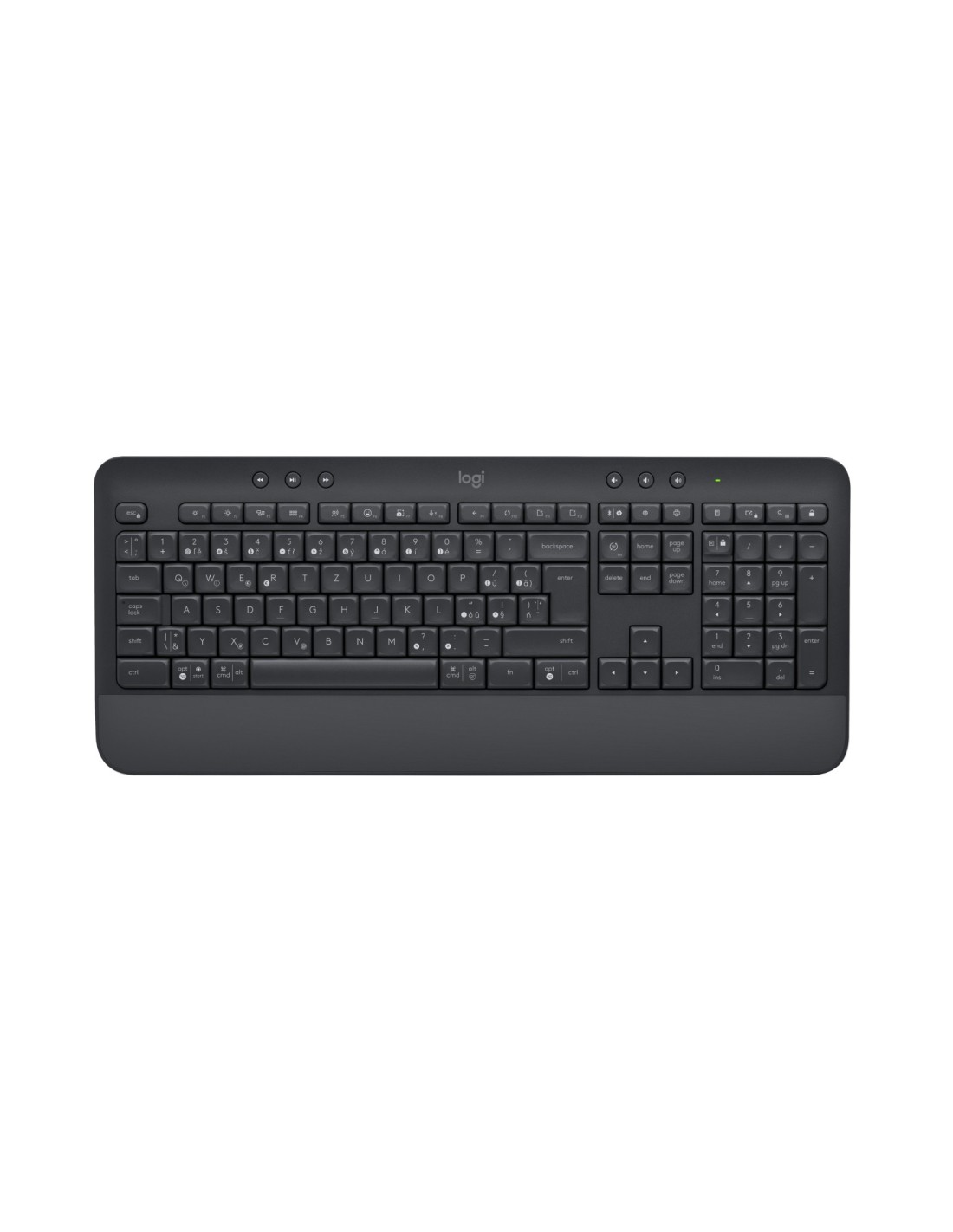Logitech 920-011006. Formato del teclado: Completo (100%). Estilo de teclado: Derecho. Tecnología de conectividad: Inalámbrico, Interfaz del dispositivo: Bluetooth, Interruptor del teclado: Interruptor de membrana, Diseño de teclado: QWERTZ, Teclado, cantidad de teclas: 118. Descansa muñecas. Uso recomendado: Oficina. Color del producto: Grafito. Ratón incluido